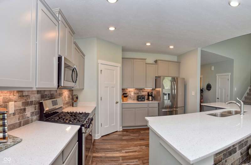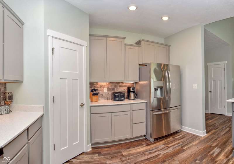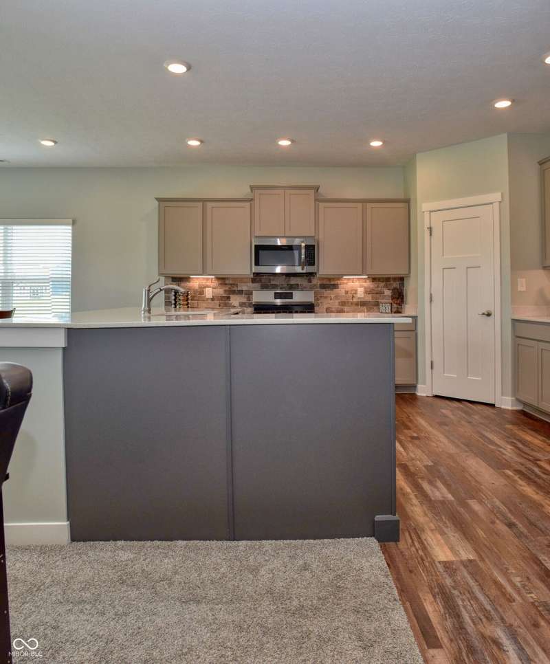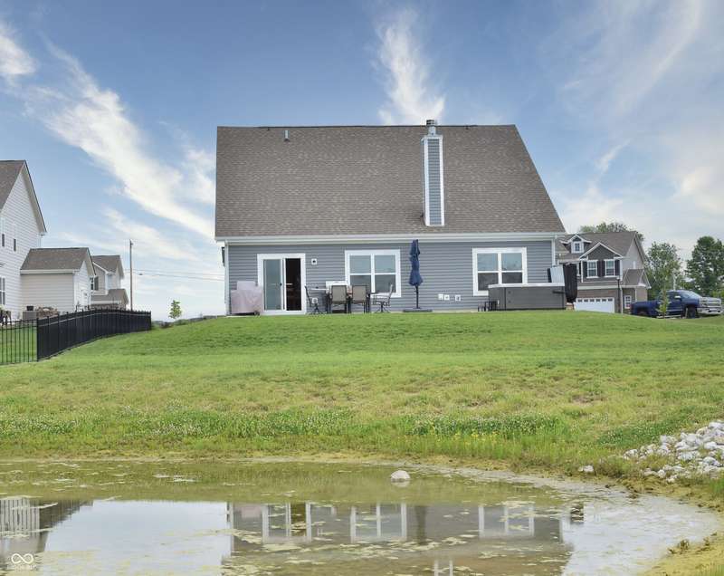 BEAUTIFUL home built just 2 1/2 years ago, loaded with options and located on cul-de-sac homesite with pond view! Main floor owner's suite PLUS another main floor bedroom plus two bedrooms upstairs and a loft!! Main floor bedroom with a walk-in closet is currently used as an office/flex space, however sellers are willing to install a door should the next owner desire to utilize that space as a bedroom. Vaulted ceiling Great Room with wood-burning fireplace! 9' ceilings and oversized 3-car garage add to the appeal! Owner's suite complete with walk-in closet, large custom-tiled walk-in shower, soaking tub and quartz countertops! Additional options include HUGE 40X12 patio, hot tub, ceiling fans, water softener, soft-close cabinet doors and drawers in kitchen and bathrooms, raised bathroom vanities, tall toilets, custom window blinds throughout, upgraded luxury vinyl plank flooring, under-cabinet kitchen lighting, gas range/oven, custom shelving installed in pantry and owner's suite walk-in closet. Washer and dryer included!