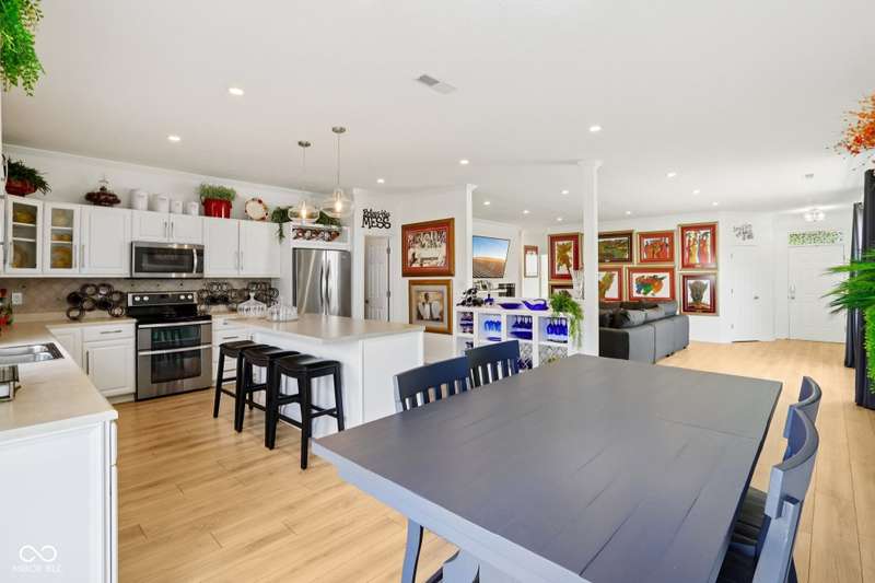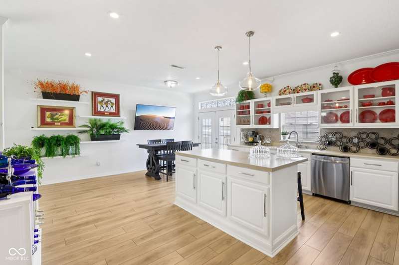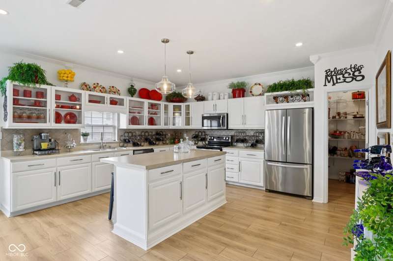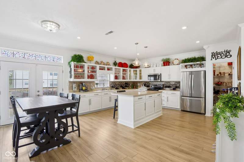 Discover this beautiful, well maintained home featuring 3 spacious bedrooms and 2 full bathrooms. The home includes a 2.5-car attached garage and boasts 9-foot ceilings throughout, creating an open and airy atmosphere. Elegant crown molding adorns every room, complemented by upgraded recessed lighting for a modern touch. All floating shelves are included, adding charm and functionality. The spacious kitchen showcases beautiful cabinetry, built-in shelves, a large kitchen island, and a generous walk-in pantry-perfect for storage and entertaining. French doors with blinds open to the inviting deck, seamlessly blending indoor and outdoor living. The expansive living room features a cozy wood-burning fireplace and large windows that flood the space with natural light. The guest bathroom is accented with stylish penny tile from floor to ceiling, adding a unique design element. The spacious master suite includes French doors that lead out to the deck, a walk-in closet with a barn door. A luxurious master bath with double sinks and a beautiful garden tub, providing a perfect retreat. This exceptional home combines comfort, style, and thoughtful upgrades-an opportunity not to be missed. The exterior boasts a covered porch and a sidewalk that extends to the backyard, where you'll find a spacious two-tier deck perfect for relaxation.