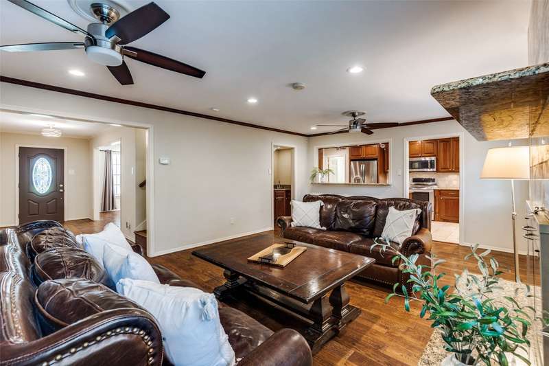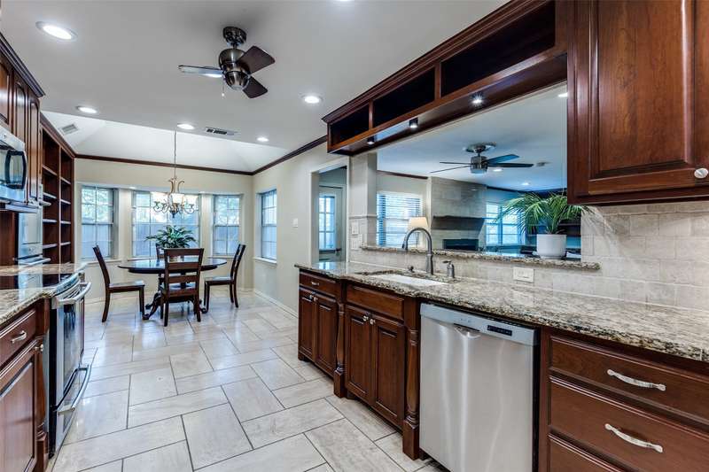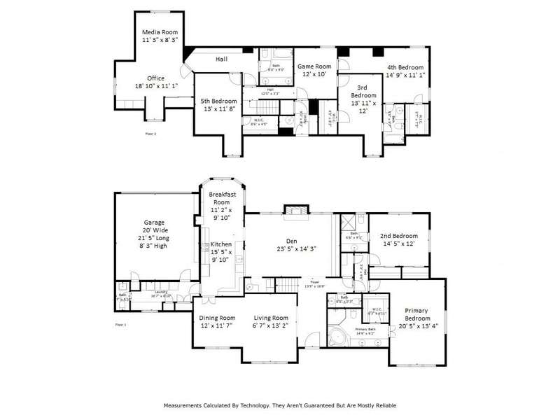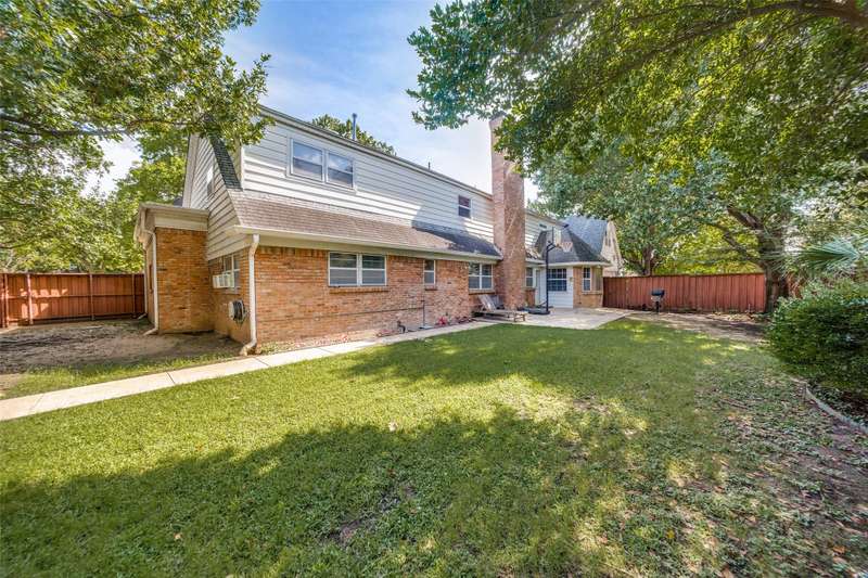 With all the charm of a 2-story, red brick Colonial-style home featuring white columns under a tall porte cochere, this 4,003 square foot home checks all the boxes! Boasting 5 bedrooms. 4 full baths & 2 half baths, the floor plan provides lots of flexibility. 2 spacious living areas are downstairs, accessing the beautifully updated kitchen with floor to ceiling cabinets, granite counters, & a full suite of stainless steel appliances. The inviting den provides beautiful builtin shelving & a handsome fireplace, with a door to the back patio. The ensuite primary bedroom & a second ensuite bedroom are on the 1st floor, with 3 bedrooms & 2 baths on the 2nd floor. At the top of the stairs is a game room available to 2 connecting bedrooms that share a large updated bathroom, with a 5th bedroom that accesses another updated full bath! At the end of the hall is a large office space that opens to a cozy media room! Surrounded by grassy lawns & tall trees in front and back, there is a captivating white back house with all utilities, & just enough space for an overnight guest! A floor plan & survey are available.