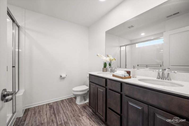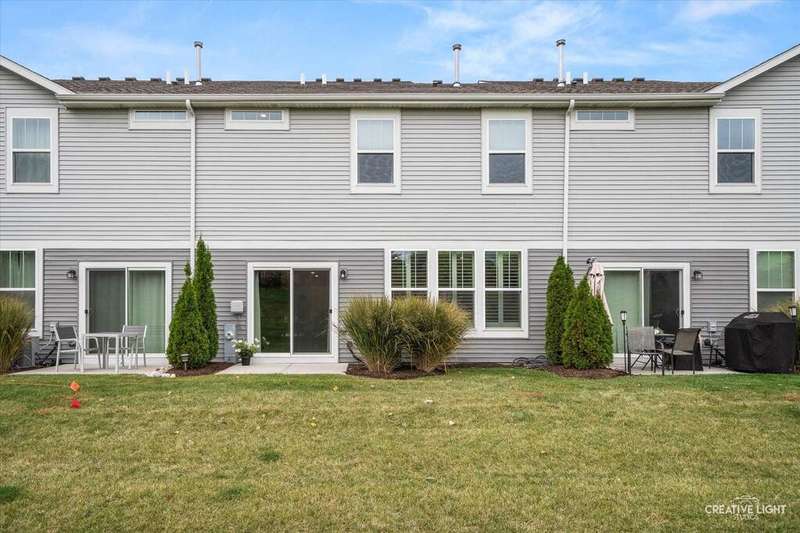 Better than new and crafted for effortless living, this stunning 3-bedroom, 2.5-bath townhome combines modern style with everyday comfort~every detail perfectly refined. From the moment you step inside, you'll feel the difference ~ this non-smoking, no-pet home has been impeccably maintained and offers a bright, open layout perfect for both relaxing and entertaining. The main level showcases wide-plank flooring, plantation shutters, and a gorgeous kitchen with quartz countertops, a large island, pantry, and stainless appliances. The newly added mudroom seamlessly combines form and function for enhanced organization. Upstairs, the primary suite boasts a custom walk-in closet and upgraded spa-like bath with dual sinks and a walk-in shower accented with natural light. Two additional bedrooms and a second full bath provide flexible space for guests or a home office. Enjoy tranquil green space views from your private patio, a 2-car finished garage, and low-maintenance living with HOA covering lawn care, snow removal, and exterior maintenance. Additional features include a whole house water filtration system. Ideally located near shops, dining, parks, bike and walking trails, U-46 schools, and SO much more! A must-see!