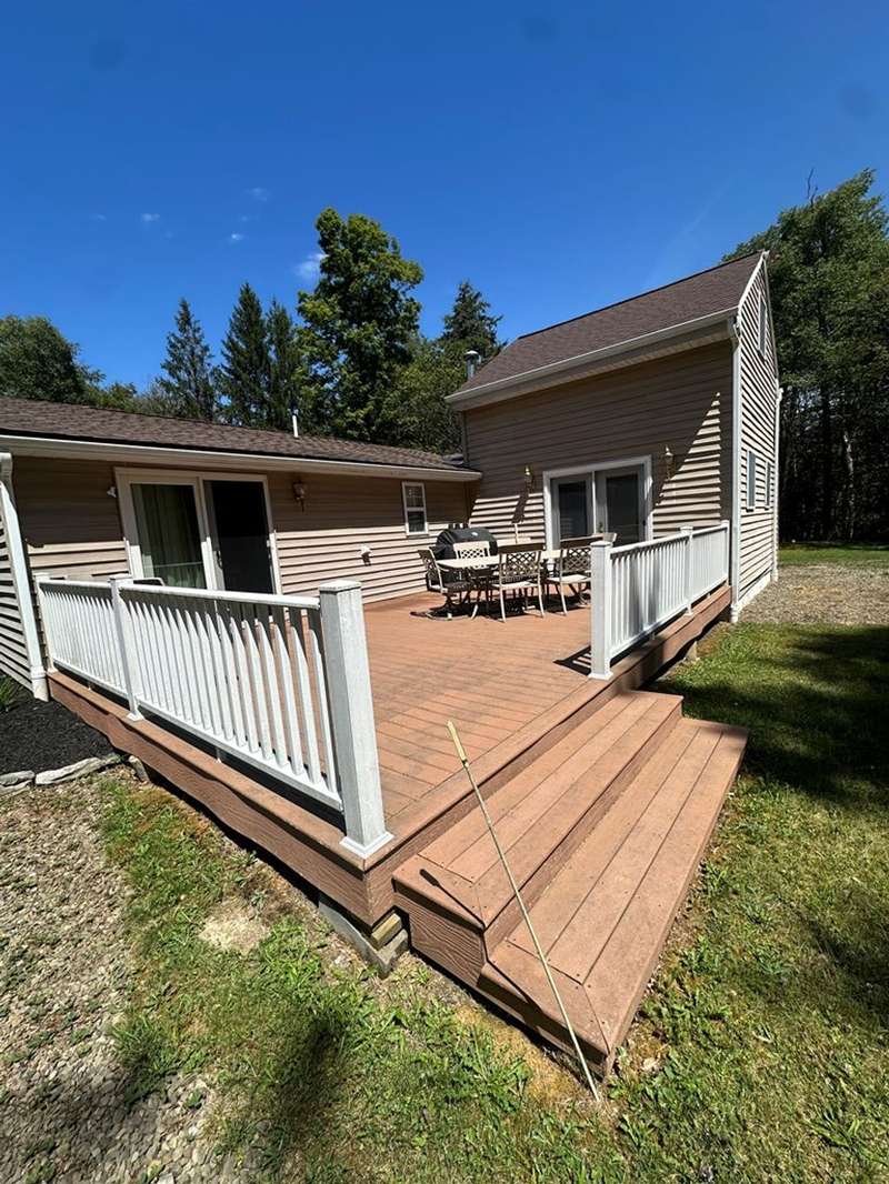 This beautiful camp/cabin/home is located in Dark Skys territory! It is on a double lot-6.6acres. 3 bedrm 1 & 1/2 bath. Lots of upgrades, well maintained and manicured grounds. An awesome front covered porch and a beautiful open rear deck with railing and both are Composit flooring! There is a detatched 2++ car garage for all your toys/mowers and automobiles. A great outdoor mix of lawn and woodland. Make an appointment today to see this little piece of heaven!