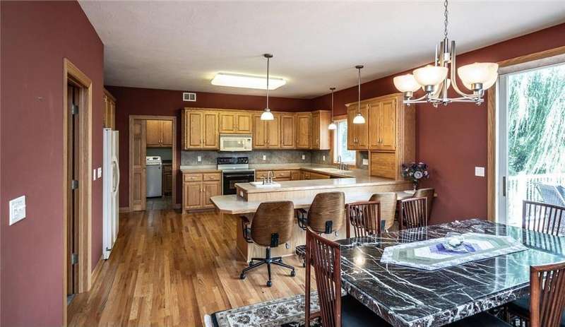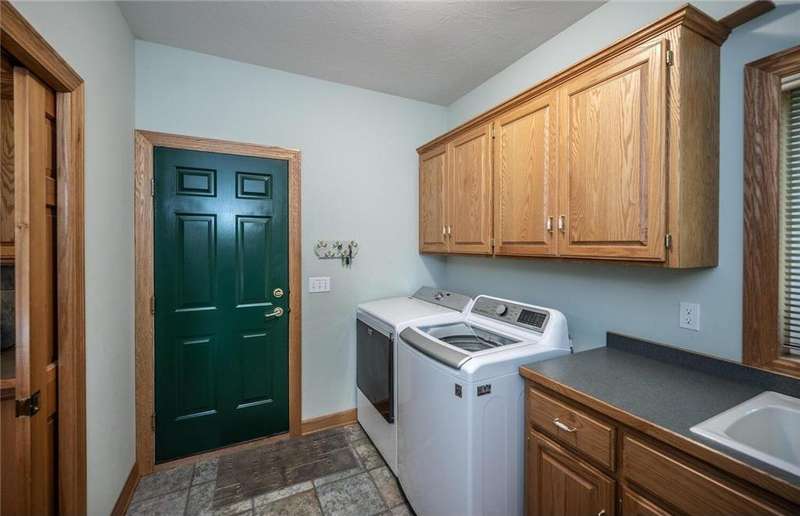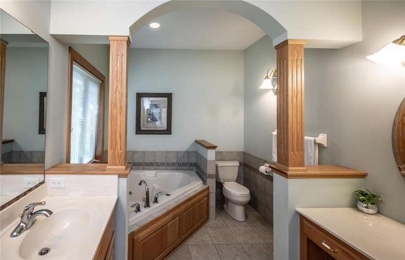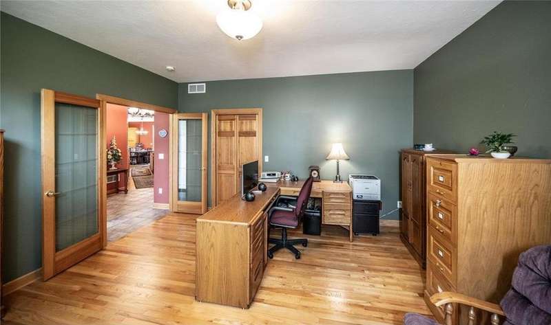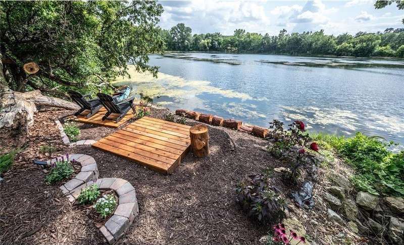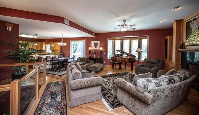 Attractive & spacious one-owner, former model, walkout rambler w/an open feel, situated on a lakefront cul-de-sac in Southern Lakes West w/gorgeous views & within minutes of Lebanon Hills Regional Park! This lovely home offers many fine features & upgrades! 5 bedrooms, main floor office, 3 bathrooms, 3 fireplaces, 9-10 ft ceilings on main level, oak hardwood floors flow through the main floor, main floor owner’s suite w/private views to back, see through fireplace to LR, luxury bath w/whirlpool tub, LR w/ bow window to back w/great views, DR w/sliding door to new deck (2024) w/terrific panoramic views & opens to both kitchen & LR, kitchen w/abundant hand crafted cabinets, snack counter w/seating, main floor laundry w/ window & adjoining walk-in closet w/window, full lower level walkout features in-floor electric radiant heat, a spacious family room w/gas FP, 3 good sized bedrooms, a very cool wellness room w/mosaic accents, new stamped-tin ceiling (2024), electric FP, custom-built sauna w/2 benches, grade-A aspen walls inside & out, window, multi-color lighting & wired to stereo, tiled floor access between sauna & walk-thru shower. Additional highlights include brick & vinyl front, updated vinyl siding (2018), updated roof w/architectural shingles (2018), covered open front porch, finished larger 3-car garage w/1 of the doors 10ft in height, 13-course block foundation w/state-of-the-art waterproofing system, double (interior & exterior) drainage system, newer Carrier furnace & central air (2021), 90-gallon high-efficiency water heater, Rainbird 8-zone underground sprinkler system, nicely landscaped yard, perennials, mature trees, pond & lakefront – plus backyard firepit & stairway to new lakeside decks w/landscaping rocks, SD #196 (Red Pine Elementary, Dakota Hills Middle & Eagan High schools) a great neighborhood & much more! *Please SEE Supplement!