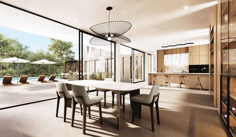 Villa Valegro is a masterpiece of contemporary architecture, designed for those who seek the extraordinary. Every corner of this villa is a blank canvas, where design merges with nature, creating unique and personalized spaces. Inspired by minimalist geometry and the rigor of algebra, along with harmony with the surroundings, Villa Valegro offers avant-garde architectural design. Clean lines, pure volumes, and large windows framing panoramic views are the hallmarks of this residence. Every detail, from the choice of materials to the layout of the spaces, has been carefully considered to create a sophisticated atmosphere without sacrificing comfort. This villa is distributed over three floors connected by an elevator with a capacity for up to six people. A spacious and bright entrance hall welcomes you to the villa, leading to the open, expansive volumes of each room. The gourmet area is anchored by a large kitchen equipped with Siemens appliances, leaving nothing to be desired, including a breakfast area and a spacious dining room, all bathed in natural light from the large windows surrounding the home. In the other wing of the villa, there is a bedroom with an en-suite bathroom, a guest toilet, and a comfortable, spacious living room for relaxation and enjoyment. The first floor is dedicated to the sleeping area, where four bedrooms are located, two of them with en-suite bathrooms, and the master bedroom with a large bathroom and walk-in closet, providing greater privacy and sophistication. Here, you can also enjoy a gallery and a patio that adds even more beauty to this first floor. The basement features a dedicated gym area with a full bathroom, a bedroom with an en-suite bathroom, a 49-square-meter garage with capacity for two cars (plus space for two more cars on the surface), a storage room, a patio that brings light and a sense of space, and the machine room. The magic happens outside the villa, where the solarium terrace and the 55-square-meter infinity pool lead to an extensive garden with spectacular panoramic views of the incredible cork oak landscape that surrounds the property. Optionally, an idyllic setting can be created throughout the plot, surrounded by plants, viewpoints, and a secret garden where you can enjoy the majesty of nature, practice yoga, or relax sitting around the firepit by the fire. When it comes to environmental commitment, this villa stands out for its dedication to sustainability and energy efficiency. The building has achieved an excellent energy rating, with an A in the overall emissions indicator, as well as in the domestic hot water (DHW) and cooling systems, and a B in heating. These ratings reflect the use of advanced technologies and high-efficiency materials, reducing environmental impact and optimizing energy consumption. Additionally, the project includes a rainwater collection and storage system with an underground tank with a capacity of 6,000 liters. The water collected from the building's roofs will be used for irrigation, promoting responsible and efficient use of water resources. With these advancements, not only is a high-quality home offered, but also a more sustainable and efficient environment, aligned with the highest environmental standards. Located in the exclusive Sotogrande area, Villa Valegro offers a luxurious and relaxed lifestyle. Surrounded by world-renowned golf courses, marinas, and beaches, these villas are the perfect place for lovers of luxury, privacy, and nature. The villa in this development is located in the exclusive Sotogrande Alto area, on Avenida de los Cortijos, a privileged location offering spectacular views of the Mediterranean, Gibraltar, and the majestic mountains of the region. Sotogrande, situated on the southern coast of Andalusia, is an enclave of discreet luxury and timeless elegance. Just 30 minutes by car from Marbella, 20 minutes from Gibraltar and its airport, and 50 minutes from Malaga International Airport, this private community has, for more than six decades, been the preferred destination for the global elite seeking a haven of tranquility and sophistication on the Costa del Sol. Sotogrande stretches over 20 square kilometers of the Costa del Sol, in the heart of one of the most beautiful places in Spain. Here, residents can enjoy a peaceful and exclusive life, surrounded by nature and privacy, in an area characterized by its low building density and the landscape design of renowned artist Jean Mus. This property in Sotogrande Alto offers access to the best golf clubs in the country, such as the Real Club Valderrama and the Almenara Golf Club, as well as the recently opened SO/Sotogrande Spa and Golf Resort, a luxurious five-star complex. Residents can also enjoy a wide range of sports, gastronomic, and leisure activities, all in a safe and private environment that perfectly combines natural beauty with modern sophistication. This is a place where time seems to stand still, where you can enjoy life at your own pace, away from the daily hustle and bustle, in one of the most coveted locations on the Costa del Sol. Villa Valegro is much more than a home; it is a long-term investment in an exclusive lifestyle. If you are looking for a unique and exclusive property, Villa Valegro is designed for you. The completion of this villa is scheduled for autumn 2025. All information available at Ondomus Sotogrande Real Estate.