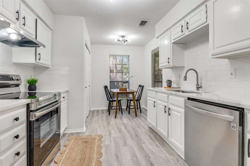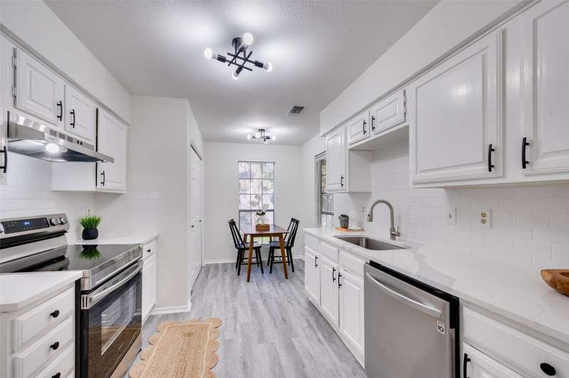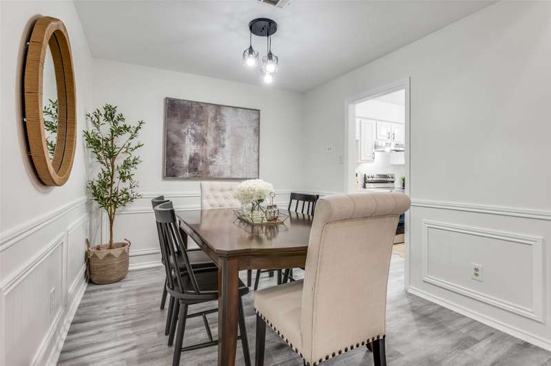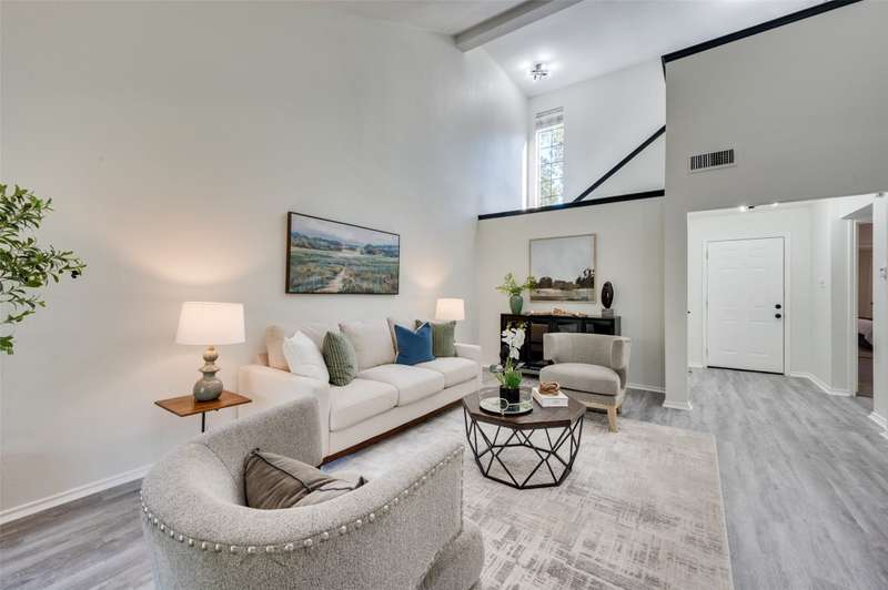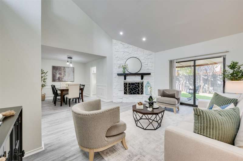 I am thrilled to present a unique opportunity to acquire a totally renovated modern retreat that seamlessly blends contemporary design with practical luxury. This residence features elegant wood-look laminate flooring throughout the main living areas, complemented by tasteful tile and quartz countertops in the kitchen and bathrooms. The ambiance is further heightened by soaring ceilings and a cozy fireplace, creating an inviting atmosphere for relaxation and entertainment. Boasting a prime central location, this home is conveniently situated between DFW and Love Field airports, ensuring effortless travel. The kitchen has been recently updated with new quartz countertops, and the home offers two bedrooms, fully updated bathrooms, and fresh paint throughout. Other notable features include a new roof (2025) and a spacious two-car garage. The property also boasts a generously sized and elegantly redesigned backyard, perfect for outdoor activities. This exceptional property offers a harmonious blend of style, comfort, and convenience. Please let me know if you are interested in learning more or scheduling a viewing.