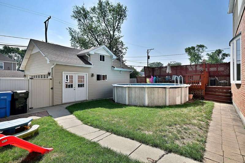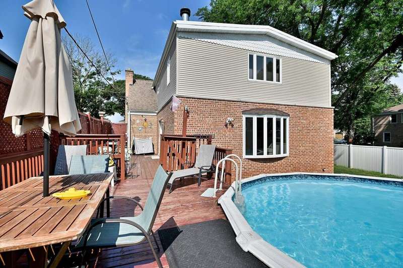 WELCOME TO 7357 N.OKETO, A BEAUTIFULLY MAINTAINED BRICK HOME NESTLED IN THE HEART OF EDISON PARK. THIS CHARMING 4 BEDROOM 3 BATH HOME SITS ON AN OVERSIZED 53X125 CORNER LOT. STEP INSIDE TO FIND HARDWOOD FLOORS THROUGHOUT THE MAIN LEVEL, A CLASSIC LIVING ROOM, FORMAL DINING ROOM, 1 BEDROOM, A FULL BATH AND AN OPEN CONCEPT KITCHEN FAMILY ROOM. THE BRIGHT AND AIRY KITCHEN BOASTS PLENTY OF CABINETS, STAINLESS STEEL APPLIANCES, A BREAKFAST BAR AND A SEPARATE SPACE FOR A KITCHEN TABLE. THE KITCHEN FLOWS SEAMLESSLY INTO THE LARGE FAMILY ROOM WITH FIREPLACE AND SLIDING GLASS DOORS ON TO A LARGE DECK OVERLOOKING A POOL AND A FULLY FENCED BACKYARD. UPSTAIRS YOU WILL FIND A LARGE PRIMARY BEDROOM AND BATH AND 2 ADDITIONAL BEDROOMS. HUGE BASEMENT GREAT FOR ENTERTAINING HAS A 30X20 REC ROOM WITH A FIREPLACE AND BAR , A LAUNDRY ROOM AND A 3RD BATHROOM. IN ADDITION TO THAT THERE IS A FULLY FINISHED 25X16 ROOM CURRENTLY BEING USED AS A FAMILY ROOM BUT CAN BE AN ADDITIONAL BEDROOM, OFFICE, WORKOUT ROOM ETC. 2.5 CAR GARAGE WITH PARTY DOORS OPEN TO YARD. MANY UPGRADES OVER THE YEARS INCLUDING NEW WINDOWS IN DINING ROOM AND LIVING ROOM AND NEW HOT WATER TANK. HOUSE IS WAY BIGGER THAN IT LOOKS FROM OUTSIDE CLOSE TO 3500 SQUARE FEET OF LIVING SPACE. PRIME LOCATION NEAR EBINGER, STOCK AND ST. JULIANA SCHOOLS, CLOSE TO BROOKS PARK-DOWNTOWN EDISON PARK EDISON PARK METRA STATION AND ALL EDISON PARK RESTAURANTS AND SHOPS. THIS ONE WONT LAST LONG. WOOD BAR IN BASEMENT IS NOT STAYING