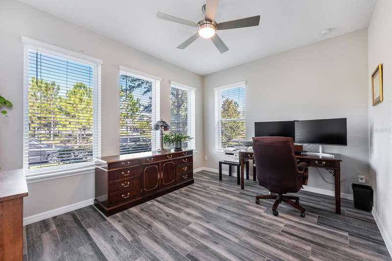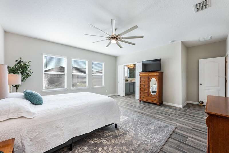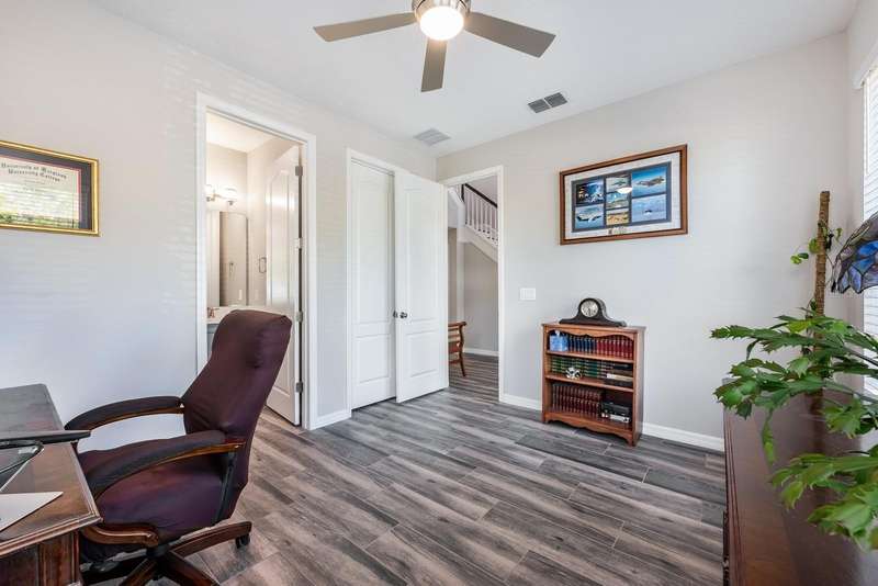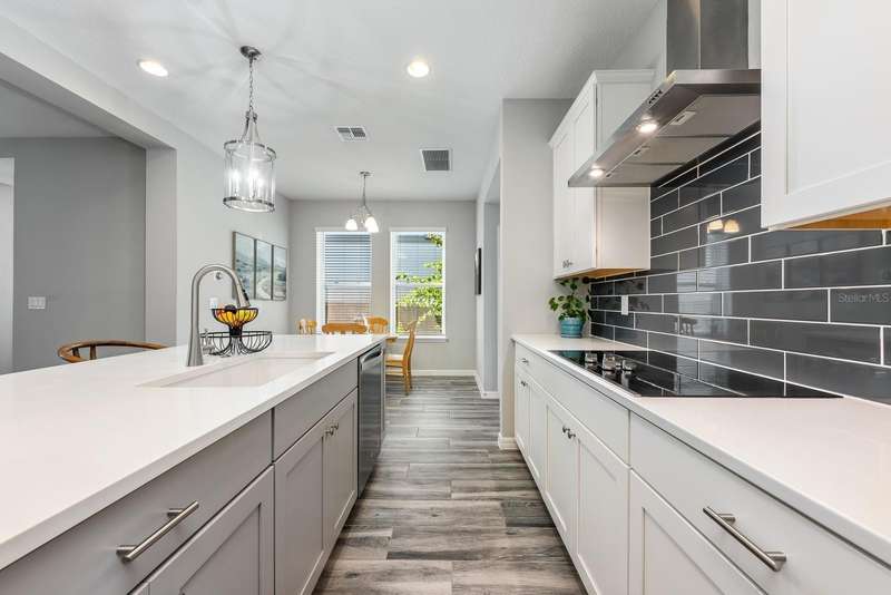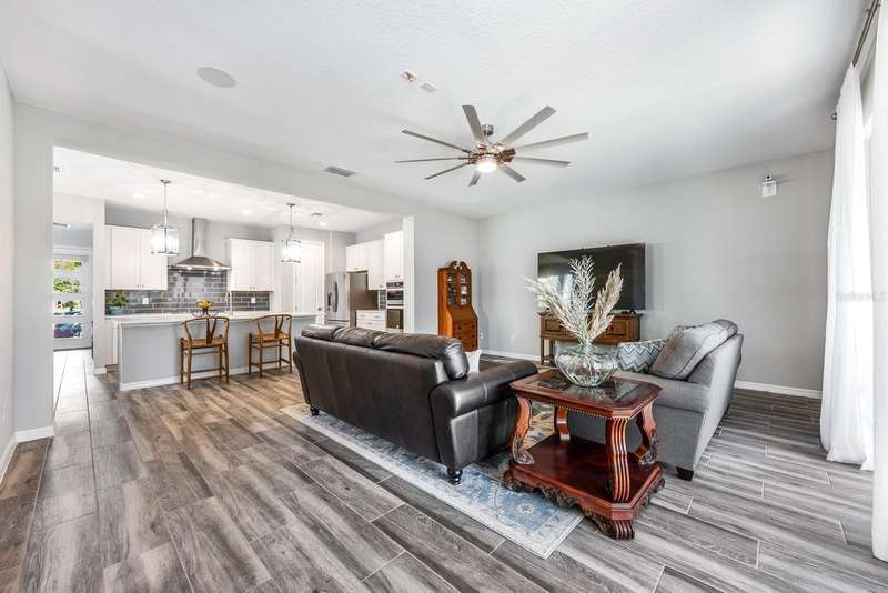 Ask about a lender provided RATE BUY-DOWN CREDIT on this home *** Seller may consider buyer concessions if made in an offer *** Built in 2019, this stylish and low-maintenance residence perfectly blends modern design with everyday comfort in one of Central Florida’s most sought-after communities - welcome to Lake Nona’s Laureate Park! The charming paver FRONT PORCH with a cheerful glass inset red door invites you inside where you will find WOOD LOOK TILE FLOORS flowing throughout the main level and an abundance of windows filling each space with coveted NATURAL LIGHT. The OPEN CONCEPT floor plan connects the living, dining, and kitchen areas – ideal for both relaxing and entertaining. A chef’s dream kitchen awaits with UPGRADED STAINLESS STEEL APPLIANCES, a fresh modern color palette, QUARTZ COUNTERTOPS, an OVERSIZED ISLAND with casual bar seating, contrasting subway tile backsplash, recessed and pendant lighting, and generous pantry storage. The light-filled dining area and spacious living room are both open to the kitchen and TRIPLE SLIDING GLASS DOORS access a large SCREENED LANAI overlooking the manicured, FENCED BACKYARD – perfect for enjoying quiet evenings or weekend gatherings. The MAIN FLOOR BEDROOM with a full en-suite bath offers flexibility for guests, in-laws, or multi-generational living and upstairs the beautiful PRIMARY SUITE continues the wood-look tile floors and boasts a modern fan, three bright windows, and double doors leading to a luxurious private bath with a dual-sink vanity, seamless glass shower, and a huge WALK-IN CLOSET. Additional highlights include a 2-car rear-entry garage with built-in storage racks and alley access, immaculate landscaping, and a – brand-new wood fence in progress – that enhances privacy. Residents will enjoy RESORT STYLE AMENITIES right within Laureate Park – COMMUNITY POOLS, fitness center, tennis courts, playgrounds, dog park, soccer complex, community garden, high-speed internet and more – all while being just minutes from the Laureate Park restaurant and business district, Lake Nona Adventure Park, and TOP-RATED LAKE NONA SCHOOLS. Medical City, including Nemours Children’s Hospital, UCF Lake Nona Medical Center, and the Orlando VA Hospital, are moments away. Quick access to SR 417, 528, and the Orlando International Airport ensures effortless connectivity to Downtown Orlando and the area’s world-famous attractions. Experience modern, connected living in the vibrant heart of Lake Nona – schedule your tour today and let us say WELCOME HOME!