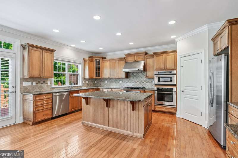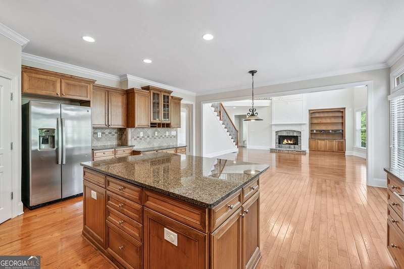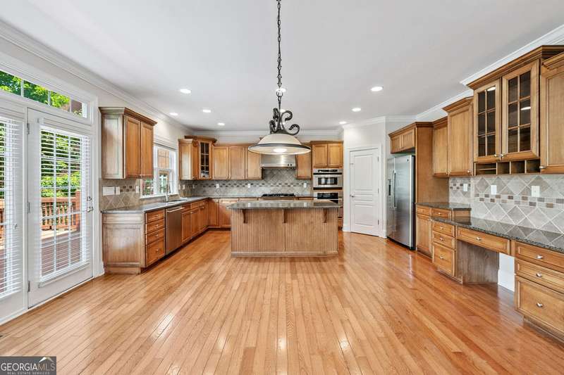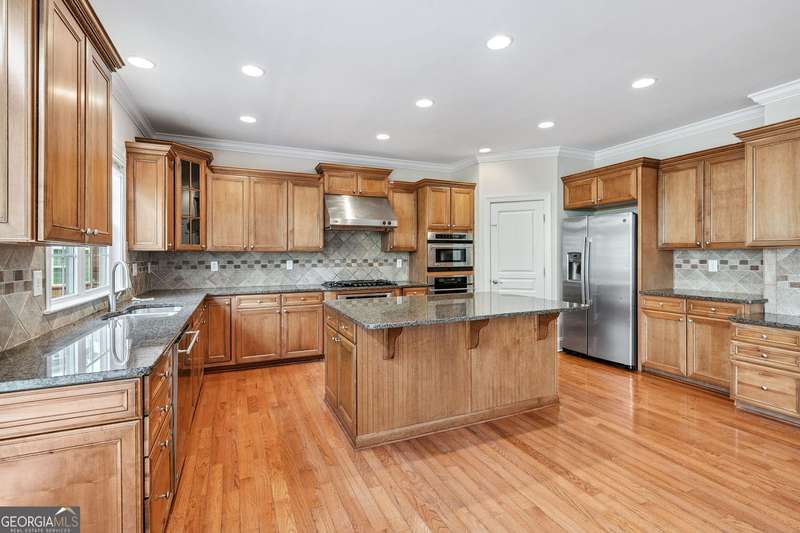 Welcome home to this beautifully maintained and freshly painted residence located in the Alpharetta High School district. With 6 spacious bedrooms, 5 full bathrooms, and a fully finished basement, this home offers plenty of space and flexibility. The bright, open floor plan features gorgeous hardwood floors throughout the main and secondary levels. Featured on the main level is the large living room with two-story windows which allow an abundance of natural light. The living room is overlooked by a large, open kitchen with ample cabinets, an island, and a breakfast area. Also available on the main floor is a guest room and full bathroom. Upstairs, you'll find a serene owner's suite with a private bathroom and walk-in closet as well as an additional ensuite bedroom, and two more bedrooms with a shared bathroom. The finished basement offers a perfect space for a home office, guest suite, media room, or play area-complete with a full bathroom and kitchenette for added convenience. Located in a top-rated school district and convenient to shopping, dining, parks, and major highways, this home is a must-see! Don't miss your chance to lease a move-in ready property in a prime location.