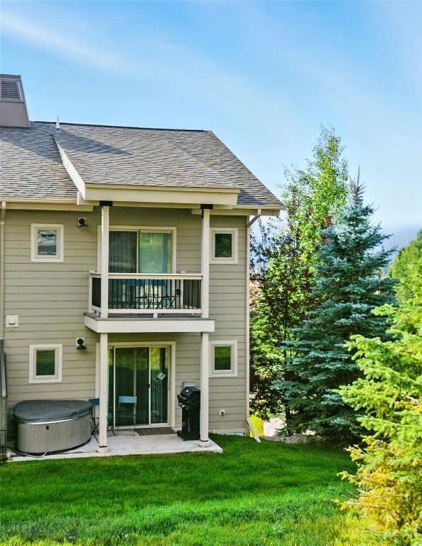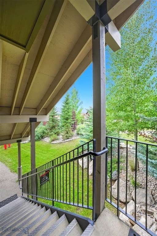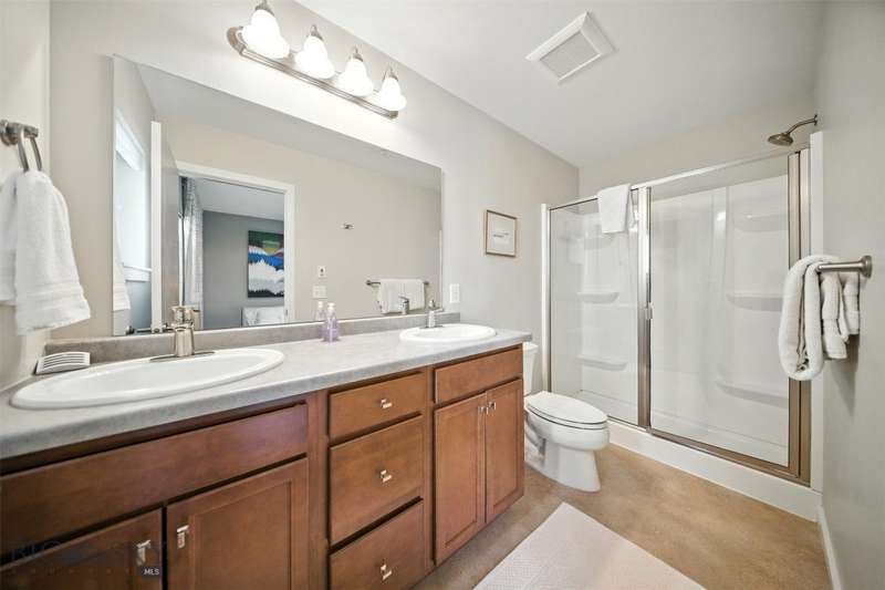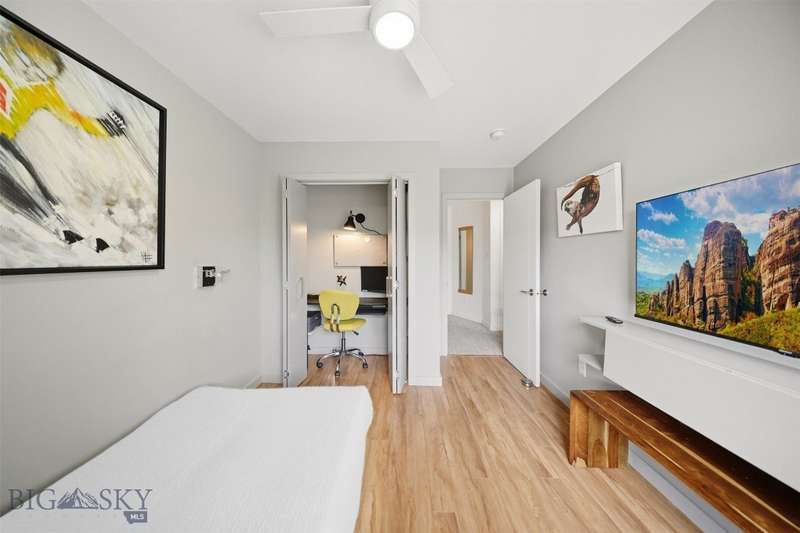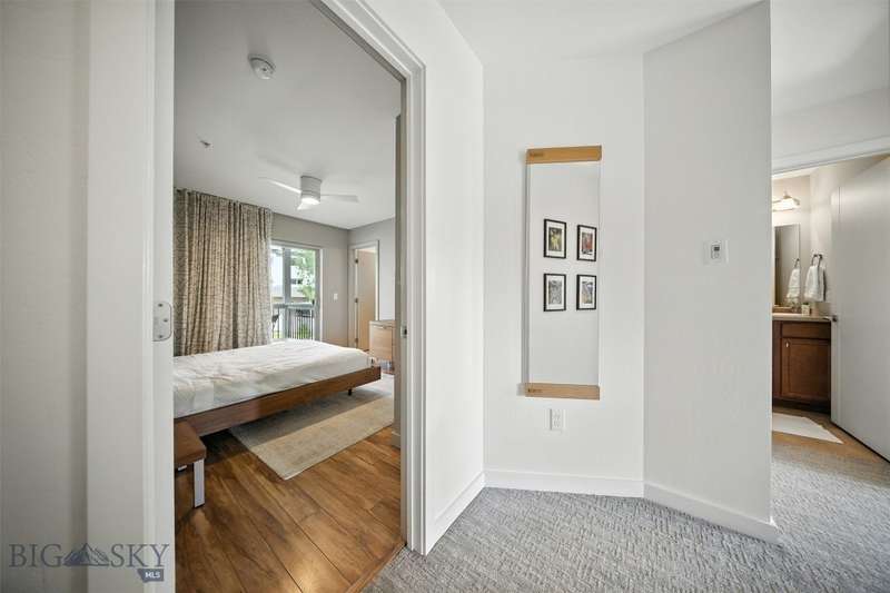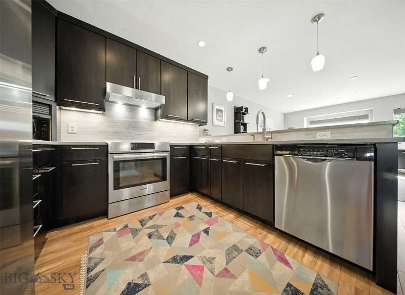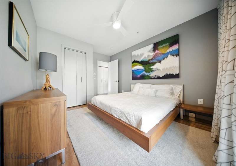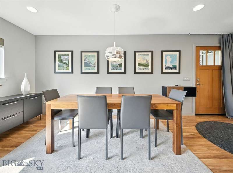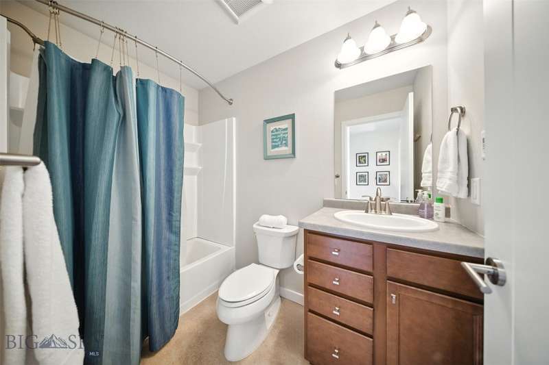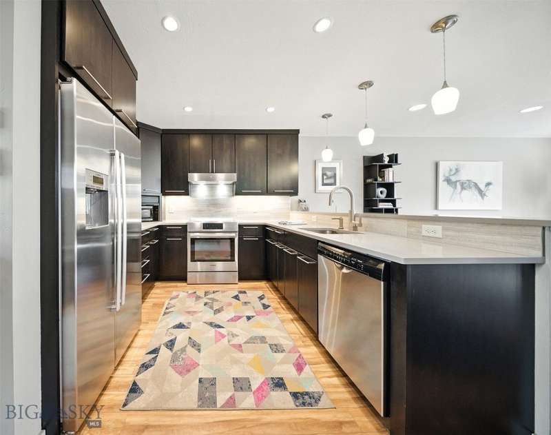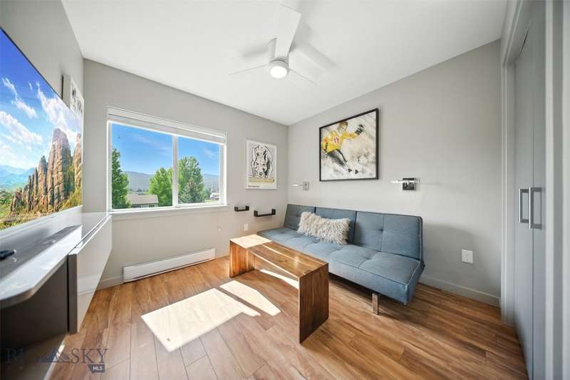 Welcome to this beautifully upgraded 3 bedroom, 2.5 bath Morning Sun condominium in Big Sky's Meadow Village. Perfectly positioned in the front row of the neighborhood, this desirable end unit offers extra privacy with no adjoining unit on one side and sits directly across from trail access to Big Sky's popular Crail Ranch Trail. With 1,348 sq. ft., this condominium combines thoughtful design with high-quality finishes. The residence is being sold fully furnished and features a one-car garage plus a large owner's storage unit. The inviting main living area opens to a private patio with hot tub, ideal for relaxing after a day of adventure. Upstairs, the en-suite primary bedroom includes its own private deck, perfect for enjoying Big Sky's fresh mountain air. The interior showcases many pieces of curated furniture from BoConcepts, a UK-based Danish design brand known for its modern, European aesthetic. The furnishings strike the perfect balance of contemporary style, space efficiency, and high-end craftsmanship, giving the home a refined yet comfortable atmosphere that feels both sleek and welcoming. Additional upgrades include new quartz countertops and cabinetry in the kitchen, upgraded appliances, solid core doors, stylish new light fixtures, and more. Set within a small, quiet complex, this condominium blends convenience, comfort, and sophisticated design in one of Big Sky's most sought-after Meadow Village locations.