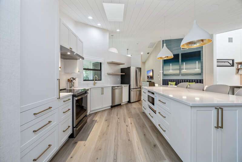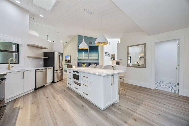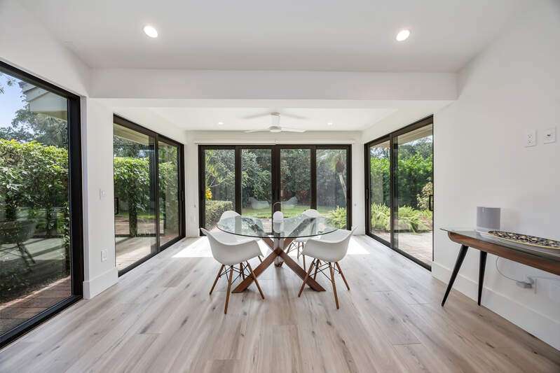 This centrally located, fabulous 3+den residence has been incredibly transformed from floor to ceiling with a stunning selection of finishes and materials. Blending style, practicality, and a touch of playful creativity, this home showcases thoughtful design choices throughout. All major appliances, along with the water heater and AC, have been replaced. New impact windows and doors create a protective core. Other desirable benefits include dramatic floor-to-near-ceiling windows and glass doors, which provide a full view of the backyard and maximize the natural light that floods into the living space. These are pre-wired for future automatic window and door coverings if you choose. Skylights also provide an abundance of natural light throughout the property. Lastly, the property is located in X Flood Zone, providing an added comfort against unwanted exposure. The quality of these improvements was initially intended for the current owner. The new owner will reap the rewards of this purposefully curated home, which anticipates the expectations of the world's most selective clientele.