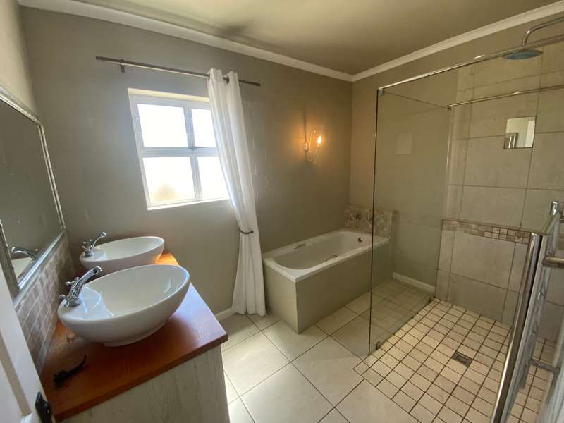 Elegant Beachside Home in Jacobsbaai This beautifully designed and meticulously maintained home offers the perfect balance of modern style and coastal comfort. Whether you’re looking for a permanent residence or a peaceful seaside retreat, this property delivers on all fronts. Located in a quiet and desirable street in midtown Jacobsbaai, it’s just a short stroll from the ocean, making it an ideal spot to enjoy beachside living. The home features three spacious bedrooms. Two of the bedrooms are positioned together and share a full bathroom, while the main bedroom is located on the opposite side of the house for added privacy. The main suite is a luxurious haven, complete with a walk-in wardrobe, extra built-in cupboards, and an expansive en-suite bathroom. The bathroom includes a shower, bath, double basins, and a toilet. Double doors from the main bedroom open directly into the garden, creating a seamless connection with the outdoors. The living areas are designed with comfort and functionality in mind. The open-plan layout includes a modern kitchen equipped with built-in cupboards, a gas stove, an oven, and a separate scullery. This space flows effortlessly into the dining area and lounge, which features a cozy fireplace. Glass sliding doors in the lounge lead to a covered patio that overlooks a beautifully established garden, offering the perfect setting for relaxation or entertaining. Additional features of the home include elegant tiling throughout, durable aluminium windows, and ample parking. The property includes a single garage and a tandem garage with space for two cars or a boat, both with automated doors and direct access to the house. Practical and modern conveniences add to the home’s appeal. Two 5000L JoJo water tanks are installed for water storage, an 8KW inverter system with a lithium-ion battery ensures uninterrupted power supply, providing peace of mind. This exceptional property combines luxury, practicality, and an enviable location. Contact us today to arrange a viewing and experience the charm of this Jacobsbaai gem!