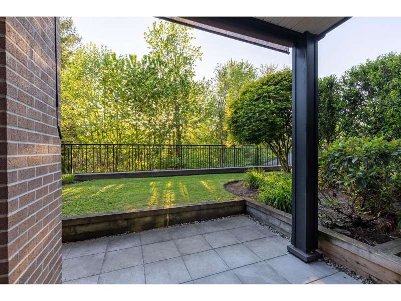 Welcome to this beautifully designed 2 Bed/2 Bath ground floor corner unit, quietly positioned on the serene side of the sought-after Varsity complex. Featuring open layout with large rich wood shaker cabinetry enhanced by custom molding, custom cabinet lighting, granite kitchen countertops and window sills, window over sink, 4.5" baseboard,and a gas range with BBQ hookup (gas is included in the strata fees!). Spa-inspired bathrooms featuring motion-sensor lighting and a deep soaker tub for ultimate relaxation. Step outside to your large west-facing private yard backing onto a lush greenbelt-perfect for pets, gardening, or summer gatherings. Short walk to a dog park, shopping, transit. Includes 2 parkings & 1 locker. Open Aug 10 Sunday from 2:30-4:00-pm (id:58403)