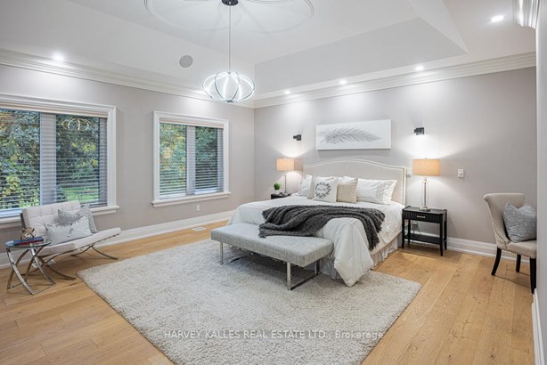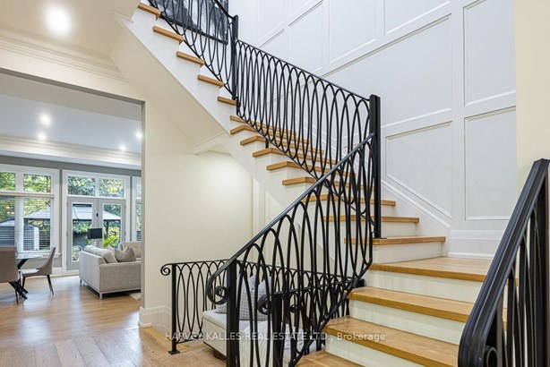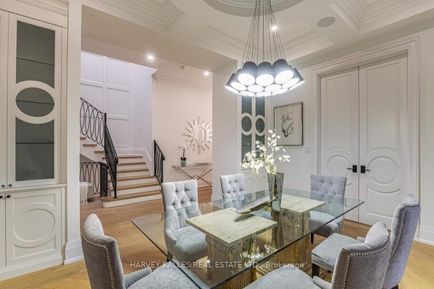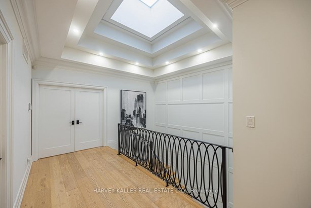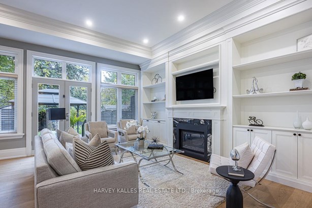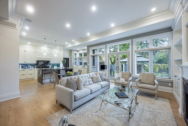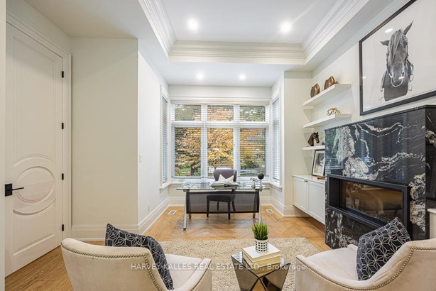 An unanticipated delight awaits within this 5000+ sq.ft. architectural gem, where classic elegance meets modern refinement. Thoughtfully designed with no detail overlooked, this residence captures the essence of luxury family living in one of Toronto's most sought-after enclaves - Chaplin Estates. Step inside to discover soaring 11-foot ceilings, smoked oak chevron flooring, and a striking tiered skylight with integrated LED lighting that bathes the home in natural brilliance. Every room showcases masterful craftsmanship, from the floor-to-ceiling wainscoting to the custom built-ins and crown moulding that frame each space with timeless sophistication. The heart of the home is defined by titanium granite finishes, a chef-inspired kitchen, and expansive entertaining areas that flow seamlessly into lush treetop views of Oriole Park - a private, natural backdrop that changes with the seasons. Perfect for families seeking top-tier private schools, this home offers walkable conveniences, serene green spaces, and proximity to the city's best amenities - all wrapped in a refined, move-in-ready experience. A true statement of elegance, comfort, and enduring value - 85 Chaplin Crescent invites you to experience luxury without compromise.