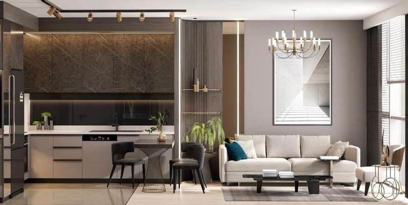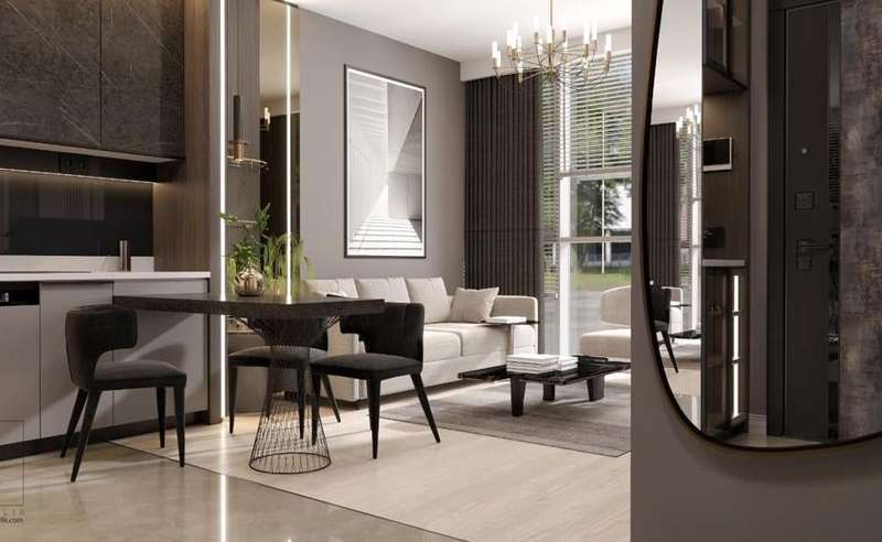 New apartments include a bedroom, living room, open-plan kitchen, bathroom, and balcony. The apartments have features such as a shower cabin, heating system with heat share meter, built-in kitchen set, quality laminate, and wet flooring.