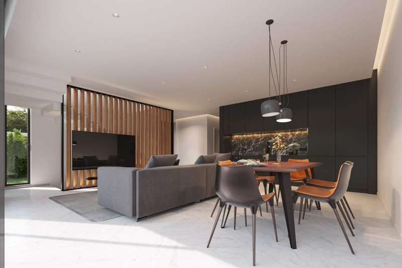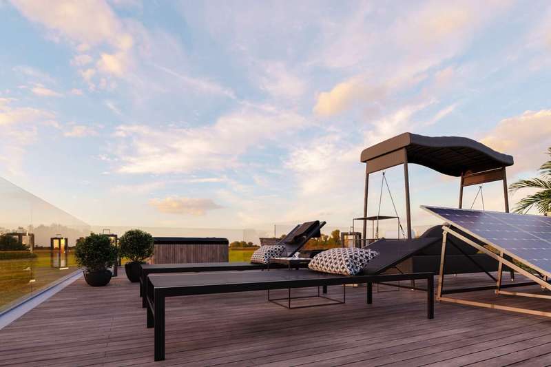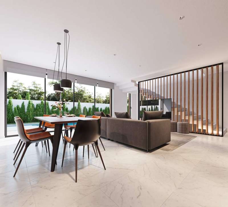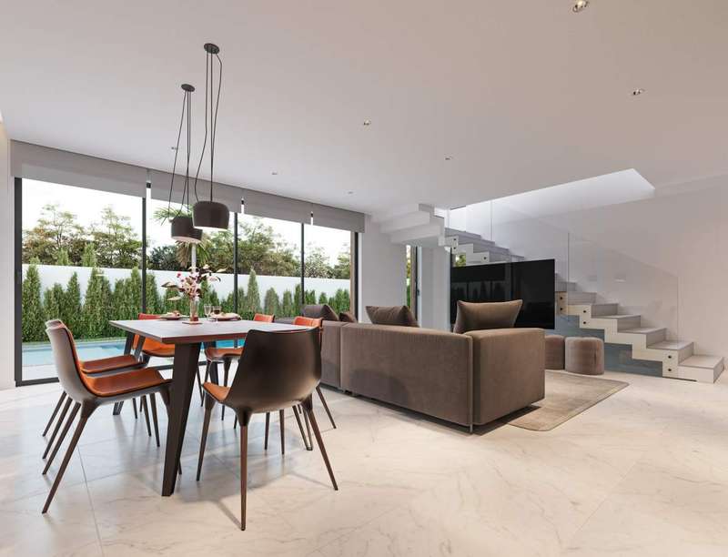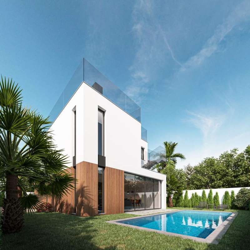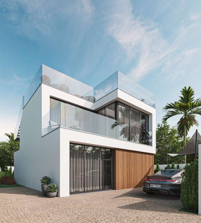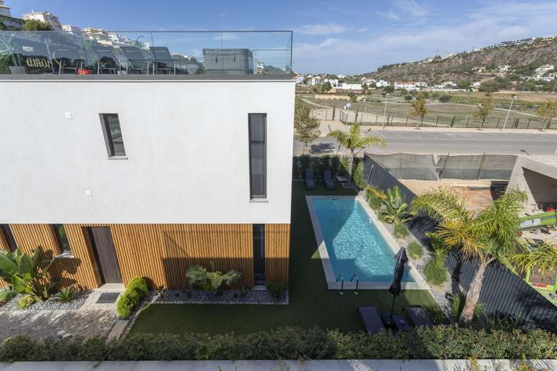 3 bedroom luxury villa with contemporary architecture. The villa's ground floor features a spacious living and dining area, a fully-equipped kitchen, and a bedroom with en suite bathroom. On the upper level, there are two more en suite bedrooms and a terrace with a jacuzzi and a recreation area. There is ample space for relaxation areas and a swimming pool on the exterior of the residence. Excellent location, within a tranquil urbanization and close proximity to the Albufeira Marina. The property is close to all types of services and 40 minutes from Faro International Airport. CHARACTERISTICS: Plot Area: 321 m2 | 3 455 sq ft Building Area: 150 m2 | 1 615 sq ft Bedrooms: 3 Bathrooms: 4 Energy efficiency: B FEATURES: Luxury Villa Three en suite bedrooms Terrace Jacuzzi Pool