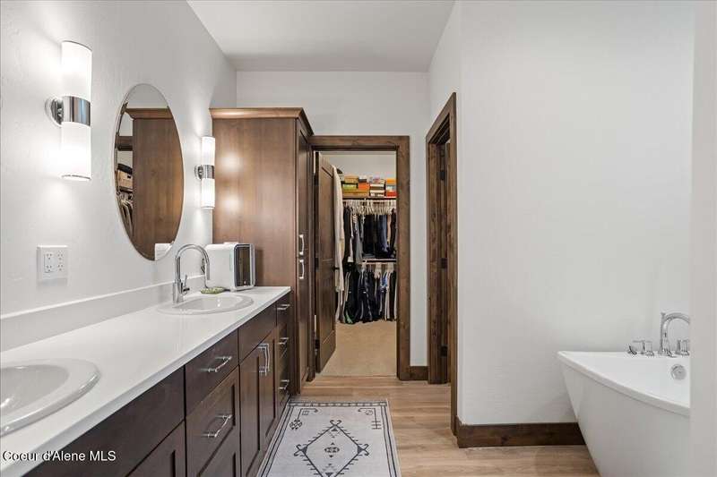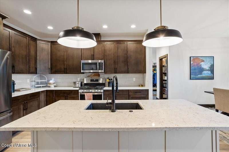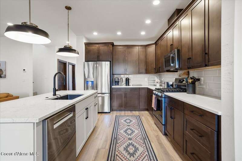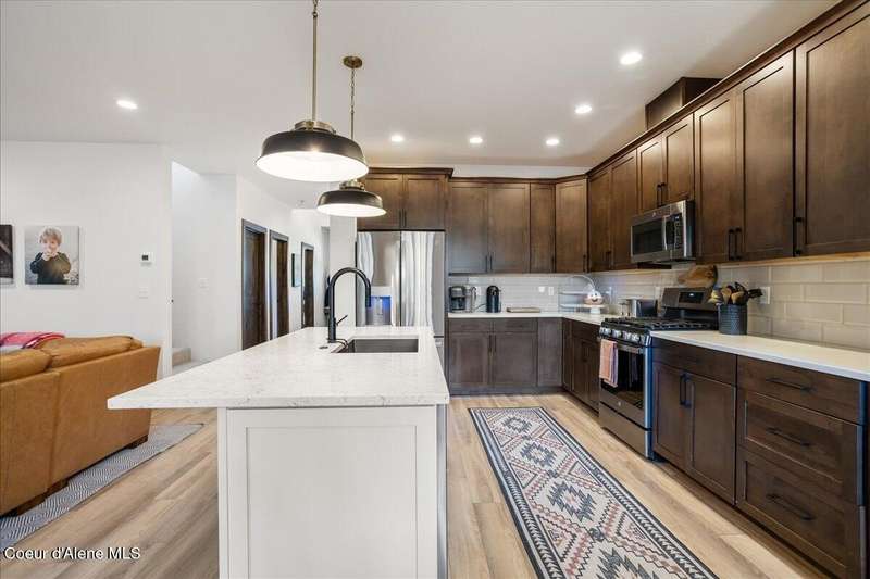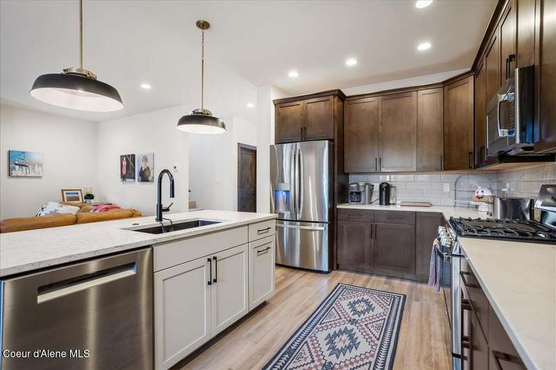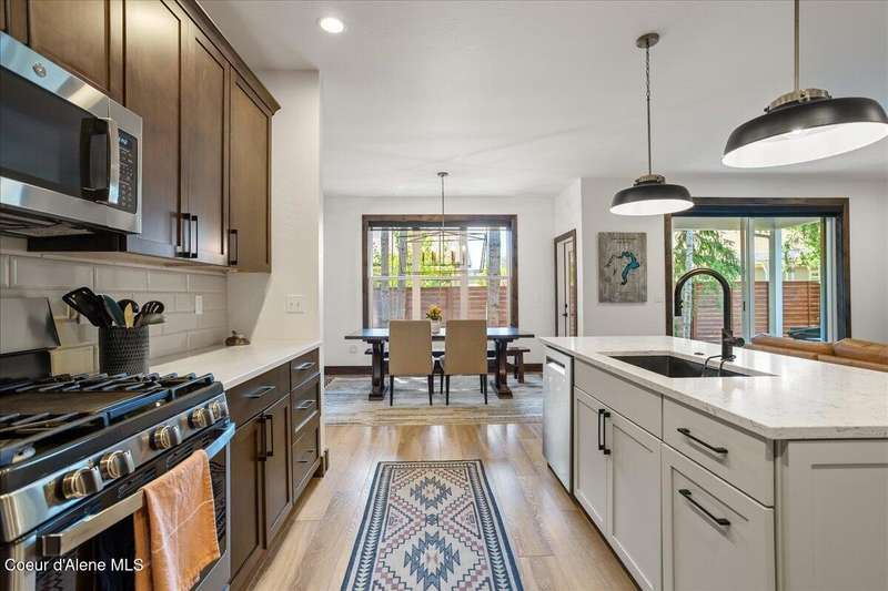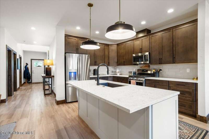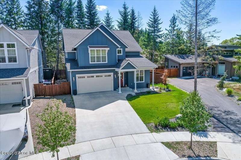 Located at the end of a quiet cul-de-sac, this spacious 5 bed, 3 bath home offers 2,884 sq ft of modern living in one of Sandpoint's most desirable communities. Step inside to discover a bright, open-concept layout with high ceilings, expansive windows, and tasteful finishes throughout. The chef-inspired kitchen is the centerpiece, featuring quartz countertops, premium stainless appliances, an oversized island, and ample cabinetry—perfect for gathering with family or hosting friends. A walk-in pantry adds functionality, while the adjacent dining and living areas flow seamlessly for everyday living or entertaining. The main floor includes a dedicated office that could easily serve as an additional bedroom — ideal for guests or multigenerational living. Upstairs, the luxurious primary suite offers a serene retreat, complete with a spa-style ensuite bathroom, custom tile walk-in shower, dual vanities, and a generous walk-in closet. Three additional bedrooms and a full bath ensure space for everyone. The fully landscaped backyard offers privacy, a covered patio, and a hot tubperfect for outdoor dining and year-round relaxation. Perfectly positioned location, this home offers easy access to everything. Just minutes away, you'll find the bike path to downtown and the lake, along with endless trails and recreation at the Pine Street Woods.