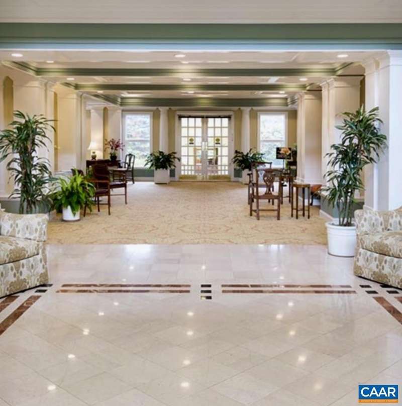 UNIVERSITY VILLAGE in beautiful Charlottesville. Just minutes to all things UVA, shopping in Stonefield and strolling on the Downtown Mall. This 1st floor condo offers a great floor plan with foyer, dining room, great room, office, kitchen with breakfast nook, laundry/mechanical room, 2 bedrooms and 2 full baths. Primary suite enjoys 2 walk-in closets, radiant heat floor in bath featuring double vanity, walk-in shower plus a walk-in tub. Covered porch (with gate) overlooking lovely mature landscaping. This 55+ community offers many amenities such as an indoor pool, exercise room, library, organized activities, and so much more. This condo comes with 1 designated parking space in underground garage and elevator access to all floors (elevator is key accessible only for added security). Utilities included.