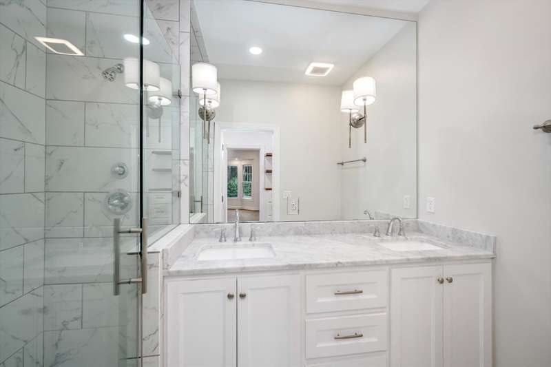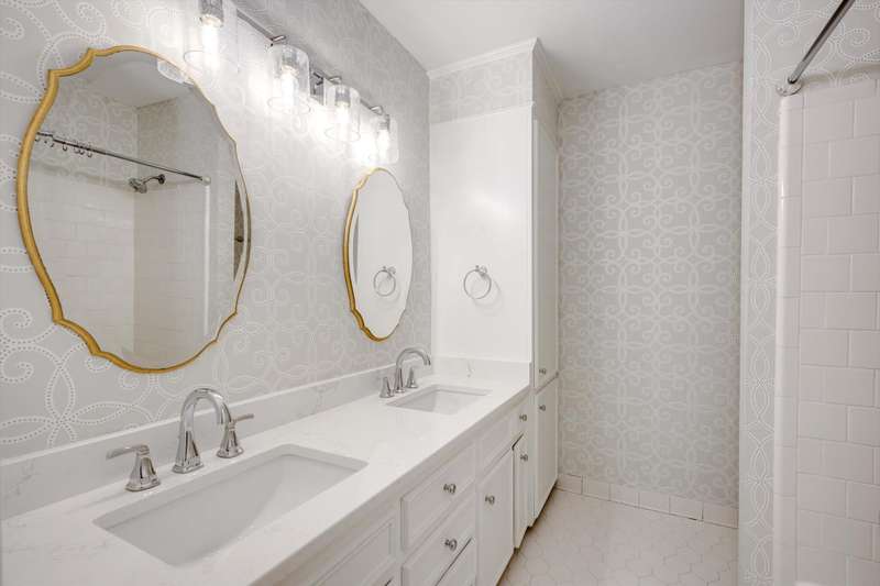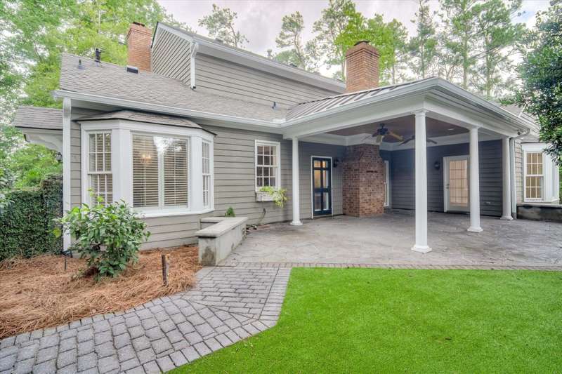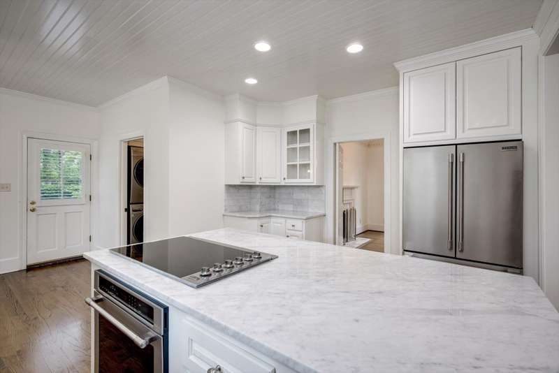 Tucked away off Walton Way, this 2-story home features 4 bedrooms, 3 full and 1 half bath. Welcoming entry with living room with marble fireplace, built-ins. Dining room with marble fireplace, brass chandelier and gorgeous hardwoods throughout main level. The open concept of den and kitchen features marble countertops, island, custom cabinetry, Viking stovetop, new Frigidaire refrigerator, convection oven, eat-in area, microwave, recessed lighting, zephr beverage refrigerator and fan. Marble fireplace in den as well, fabulous space for relaxing and entertaining. Large laundry room with stackable washer & dryer, countertops for folding laundry. Owner's suite on main, nice walk-in closet, marble bath countertops, shower, double sinks. Upstairs features 3 bedrooms with new carpet, ceiling fans, baths with designer wallpaper, large closets, even floored attic space. Outside back has covered area for watching TV with beautiful landscaping and patio area.