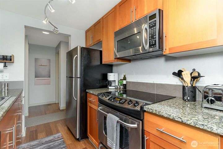 FULLY FURNISHED!1 BR/1 Bath, 723 sq. ft. condo, rents like a long term Air B&B unit - includes linens, cookware, bath accessories, etc. Ideal if in town for several months, working on a long term project or just want to try out Seattle living. FURNISHING NOTES: Fully furnished with beautifully appointed designer furniture pieces and artwork throughout. All bedroom furniture is Dania mid-century modern with a 3” thick memory foam topper on the queen size bed.. Terms:12 month lease preferred. 1st & 1 month's rent deposit. Tenant pay internet/cable only. No Smoking. No Pets. Renters insurance is required. Min credit score 730+. 3:1 income ratio.