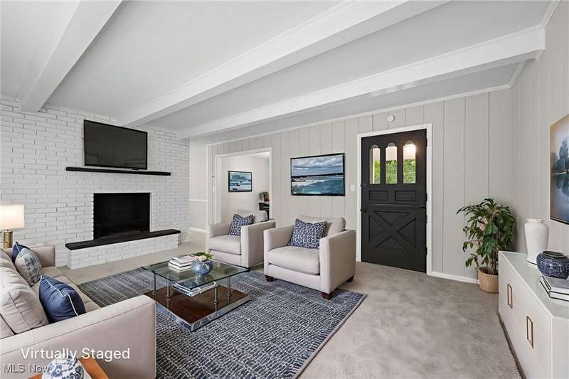 Welcome home to this recently renovated Cape Cod. Upon entering the home there is a large living room that has beamed ceilings, woodburning fireplace, new carpeting, Dutch door leading to a side patio overlooking the rear yard. Formal dining room is off the living room and kitchen which has new Traffic Master Laminated wood plank flooring and new light fixture. Kichen is located at the front of the home has been updated with soft close white cabinetry, laminated wood plank flooring, Quartz counters, dishwasher, above range mounted microwave. The kitchen also has a built-in wall oven, electric cooktop and Dutch door that opens to stairs to the attached garage and lower level. There are two bedrooms on the main level with an updated full bath that has been renovated with new vanity, sink, mirror, faucet, toilet, tub shower, flooring and lighting. Second floor has an additional two bedrooms with carpeting and a second full bath that has been renovated with a new tub, vanity, sink, toilet, medicine cabinet, flooring and lighting. Lower level has been partially finished with a 35x12 recreation room with new carpeting and has glass block windows and a second fireplace. There is an additional room that could be an office, playroom or craft room. The lower level has a laundry room along with an additional storage room or workshop. Other improvements include a new asphalt driveway, wireless keypad and overhead garage door. The home has been freshly painted throughout, new exterior and interior lighting, new concrete service walk to the rear yard and updated porch with railing and steps. Close proximity to shopping, restaurants, library and more. This home is one not to be missed!