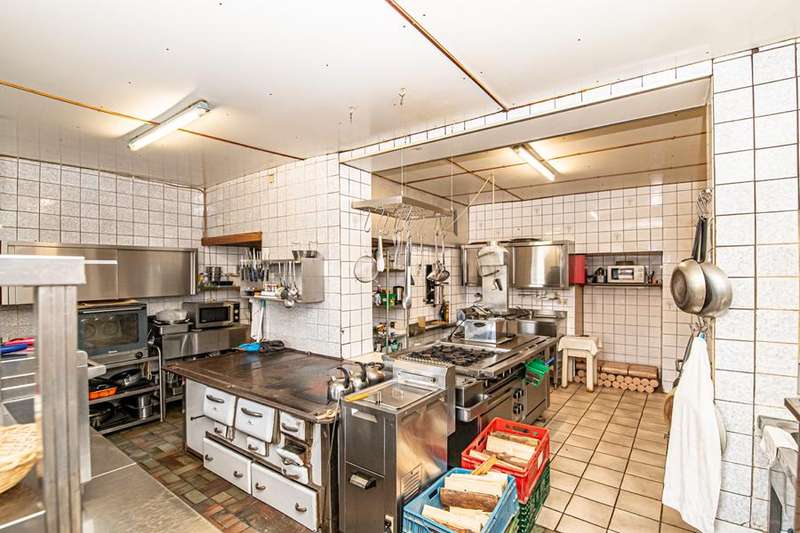 Built in 1906, this residential and commercial building is situated on a plot of around 2600 m² and is ideal for investors looking for a versatile property. The building has a total of 4 apartments as well as various commercial spaces that offer a wide range of potential uses. For business activities, there is a restaurant with a bar, a fully equipped restaurant kitchen, an additional restaurant room, a store and a cold store on the first floor. A workshop with a garage below offers sufficient space for versatile use. A single garage and a large garage offer additional storage space for vehicles or other items. The large covered terrace and the ingrown garden invite you to linger outdoors. The versatility of this property makes it an attractive investment with great potential. The location of the apartment building is central and easily accessible, which is an advantage for potential tenants and commercial customers. Overall, this property offers an ideal opportunity for investors looking for a versatile and well-located property. With its various possible uses and solid building fabric, this apartment building represents an interesting investment opportunity.