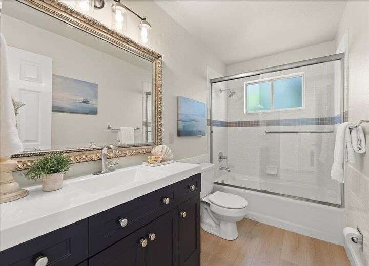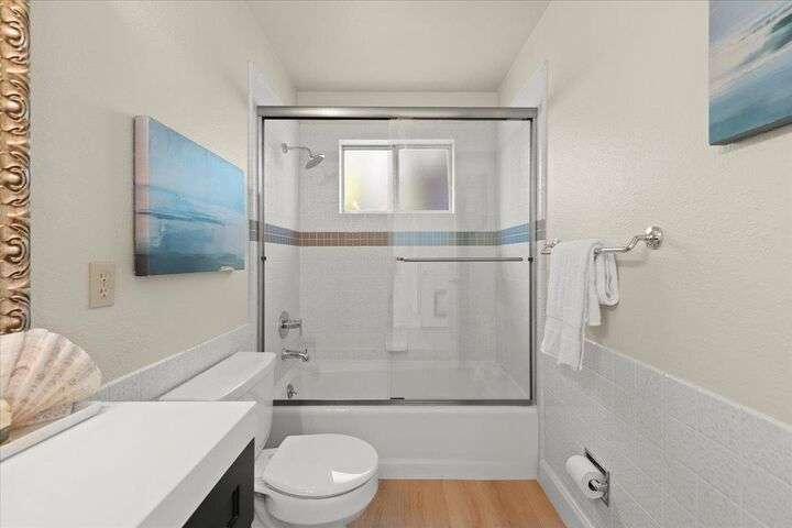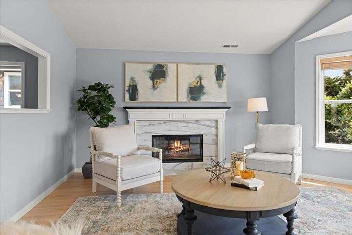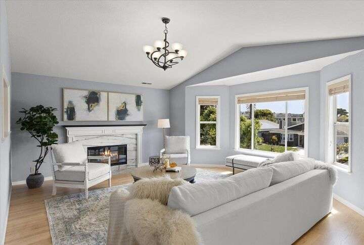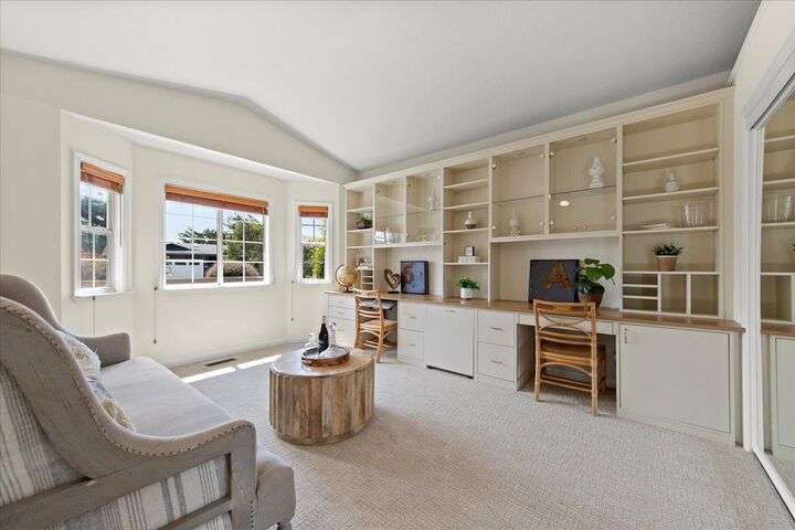Spacious 2 story home in coveted Alsace Lorraine neighborhood of Half Moon Bay. Nicely appointed home with 3 bedrooms downstairs, one set up as a home office, and separate primary suite upstairs. Updated kitchen with breakfast bar, new gas cooktop and wine fridge, double ovens, garden window over sink, plenty of cabinet space. Kitchen is open to the familyroom with a sliding glass door to the rear deck. Very large deck with stairs to rear yard. 7,500 sq. ft. lot extra deep lot with assorted foliage and room to play. A must see for those looking for spacious home on west side of highway. Close to the beach and coastal trails. Near elementary and middle school, wide streets. An ideal neighborhood for your coastal lifestyle.