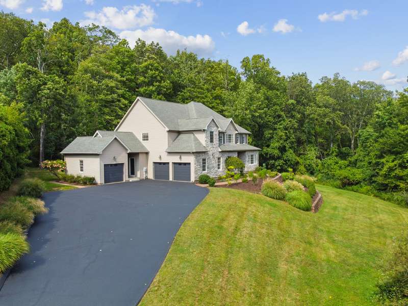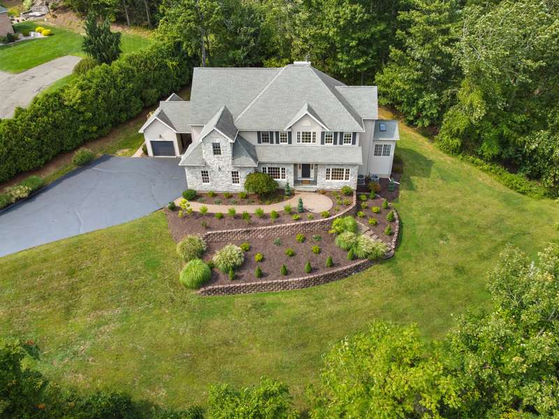 Welcome to 7 Mountainside Road. Built in 2001, this rarely available west of Mountain Road Colonial, offers an open-concept floor plan with hardwood floors and soaring 9-foot ceilings, creating a bright and spacious feel with room for everything you need. The kitchen features granite countertops, breakfast bar, and eating area with sliders to the back deck and is seamlessly connected to the family room with gas fireplace. The main floor also includes a formal dining room, living room, sunroom, and an office, perfect for work-from-home needs. Upstairs there are 4 spacious bedrooms, each with an ensuite bath, plus a fabulous second-floor family room with fireplace, ideal for a rec space, study space, music room, or billiard room - the possibilities are endless. The spacious primary suite features a huge bath with walk-in shower, double sinks, and soaking tub. The finished lower level offers even more living space with recessed lighting, new carpeting, and a full bath - perfect for a gym,