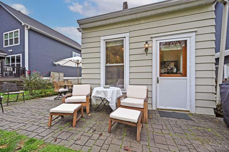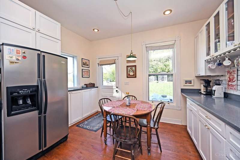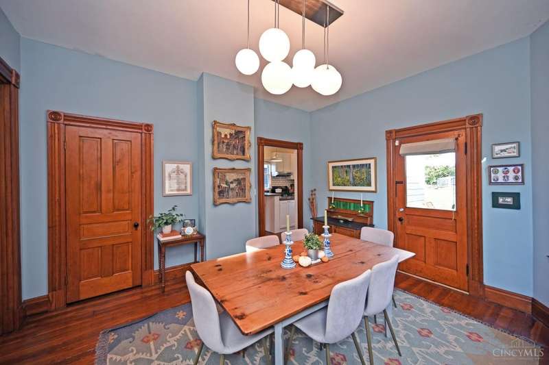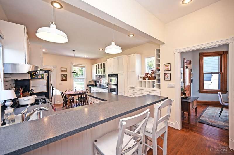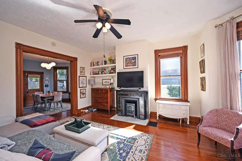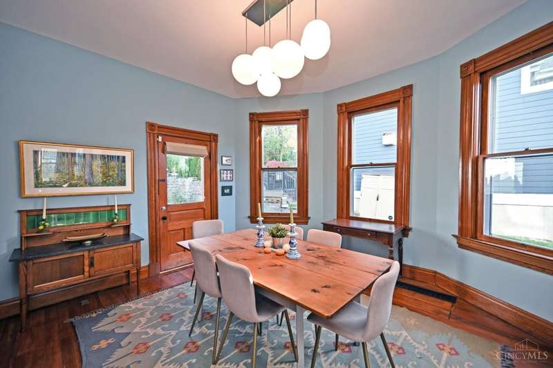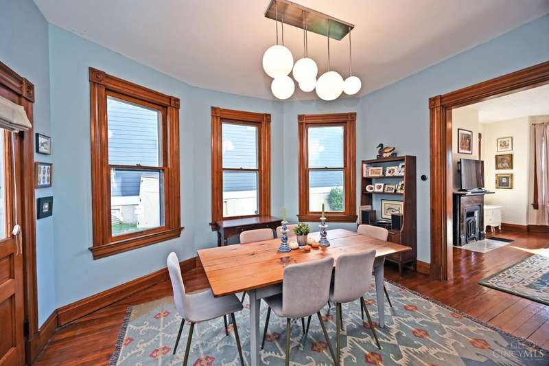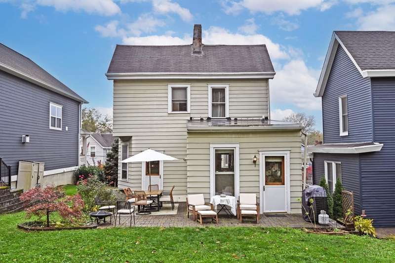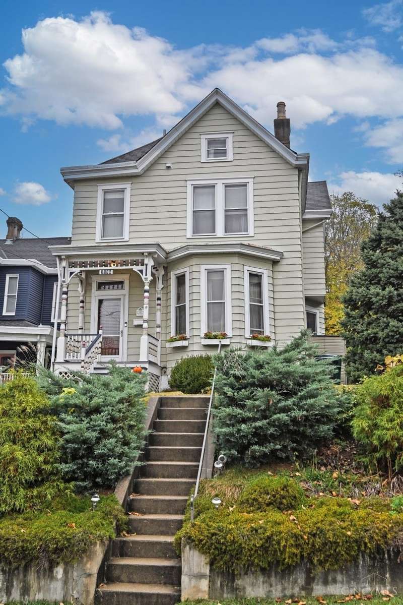 This delightful Victorian is perched above it all on a quiet side street just up the hill from Columbia Tusculum's charming business district. Move right in & enjoy the many historical details that remain alongside every modern convenience added. An intricately carved front porch greets your guests, while the entry reveals beautiful hardwood floors & millwork, with restored transom & bay windows, filling the home with natural light. The living room beckons with an original marble fireplace & formal dining beyond walks out onto a wrap-around paver patio with lovely backyard, also accessible from the eat-in gourmet kitchen. Pantry, coffee bar, full bath & laundry room are also tucked away on the 1st floor. Upstairs you'll find 3 comfortable bedrooms, one with a decorative fireplace, all served by an updated hall bath with designer finishes. The 3rd bedroom offers access to a semi-finished attic that could easily be upgraded to additional living space if desired. AC recently replaced.