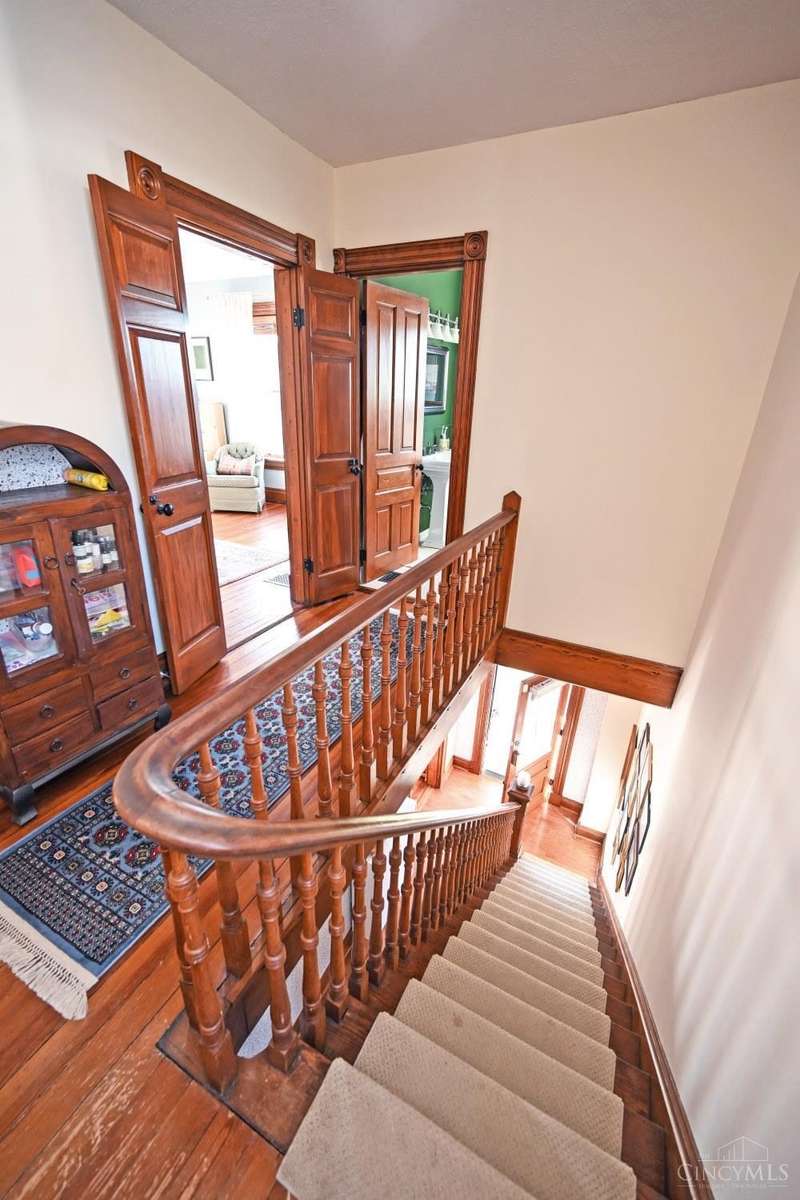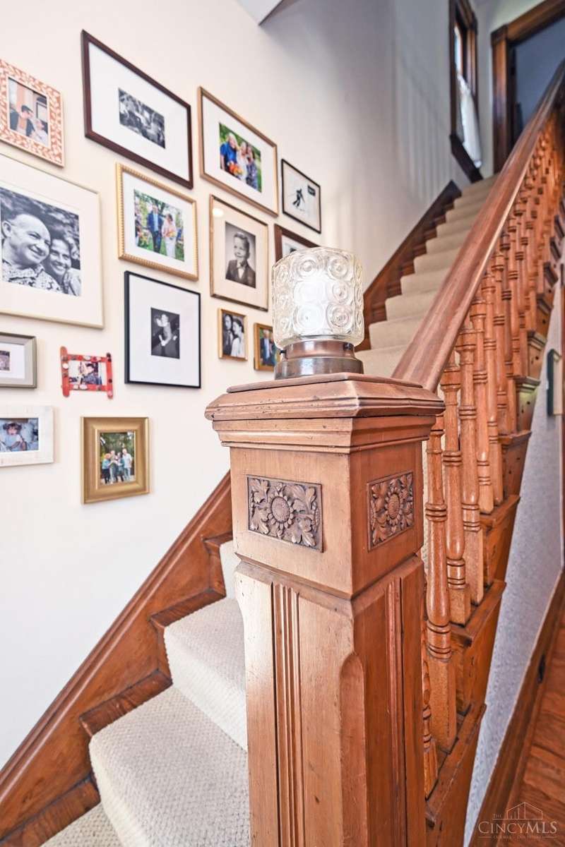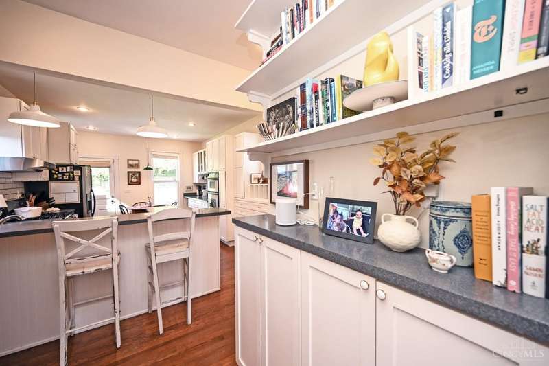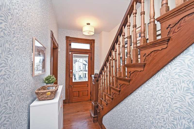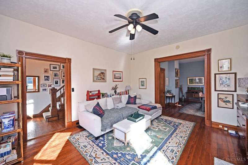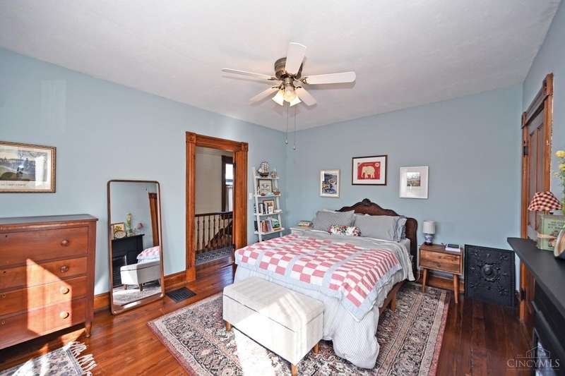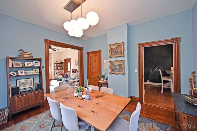 This delightful Victorian is perched above it all on a quiet side street just up the hill from Columbia Tusculum's charming business district. Move right in & enjoy the many historical details that remain alongside every modern convenience added. An intricately carved front porch greets your guests, while the entry reveals beautiful hardwood floors & millwork, with restored transom & bay windows, filling the home with natural light. The living room beckons with an original marble fireplace & formal dining beyond walks out onto a wrap-around paver patio with lovely backyard, also accessible from the eat-in gourmet kitchen. Pantry, coffee bar, full bath & laundry room are also tucked away on the 1st floor. Upstairs you'll find 3 comfortable bedrooms, one with a decorative fireplace, all served by an updated hall bath with designer finishes. The 3rd bedroom offers access to a semi-finished attic that could easily be upgraded to additional living space if desired. AC recently replaced.