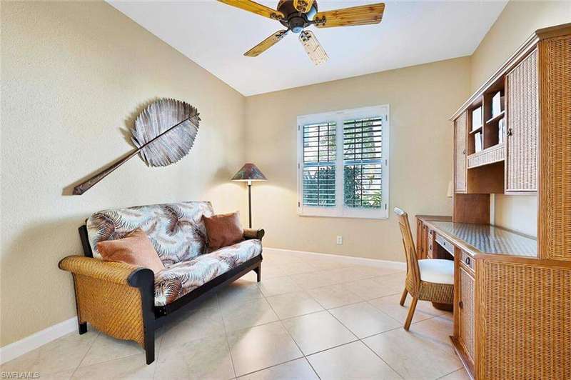 Breathtaking lake and golf course views grace your entire line of sight in this cozy three-bedroom home. Exceptionally well cared for with upgrades including stainless steel appliances, granite tops, tile throughout and so much more but the view...is out of this world! Ravenna residents should be commended for approving and orchestrating an extensive community transformation, including a new flat tile roof (2021), gutters, fresh exterior paint, Category 5 impact windows, sliders, garage and front doors (2022), updated exterior lighting, pergolas, and refreshed landscaping. Pelican Marsh amenities include a popular community center with a newly updated pool, fitness room, and clubhouse, 8 Har-Tru tennis courts, 6 pickleball courts, 3 bocce courts, a state-of-the-art gym/spa, a restaurant with live music, and a large fire pit, with optional golf memberships available. Ideally located in North Naples, it's just minutes from Mercato, Waterside Shops, fine dining, and pristine beaches.