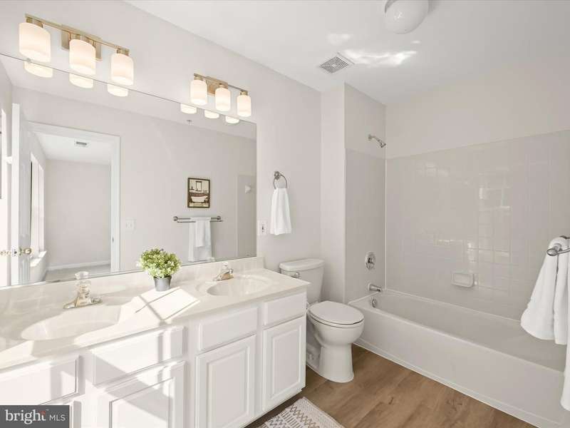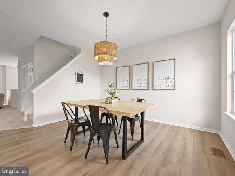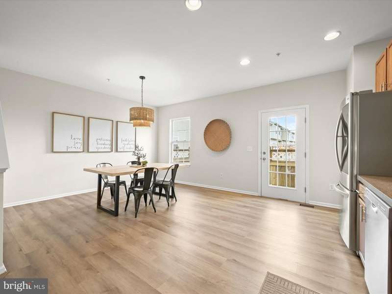 Looking out into tranquil wooded scenery, this brick front home in the sought-after Russett community is move-in ready and brimming with thoughtful updates. Offering four spacious bedrooms, a two car garage on top of rare abundant street parking, and a brand-new high-efficiency HVAC system, this home combines modern comfort with natural beauty in a setting designed for everyday ease. The Little Patuxent River, which winds around the immediate neighborhood through mature forest preserves, creates opportunities for fishing, wildlife watching, or even canoeing. The main level welcomes you into a bright and spacious living room where natural light pours through the windows. Flowing seamlessly from here, the kitchen and dining combination creates an inviting space for everyday living. The kitchen shines with 42-inch cabinetry featuring updated hardware pulls, stainless steel appliances, and a convenient pantry. The adjoining dining area opens to a private balcony, perfect for grilling or fresh air and relaxation. A powder room and walk-in storage closet complete this level. Upstairs, the expansive primary bedroom offers a serene retreat with wooded views, walk-in closet, and an en-suite bath showcasing a double sink vanity. Two additional bedrooms share a beautifully renovated full bath with a soaking tub and subway-tiled shower surround. The lower level extends the home's versatility with a fourth bedroom, another full bath, and a laundry room with direct access to the two-car garage, which includes storage shelving. Recent updates bring confidence and comfort: a newly renovated upstairs bath (2019), water heater (2022), dishwasher (2025), refrigerator, microwave, and oven (2020), washer (2015) and dryer (2025), plus fresh paint, brand-new carpet, and luxury vinyl plank flooring (2025). A high-end, ultra-efficient heating and cooling system with a transferable warranty was just installed in 2025. The Russett community enhances daily life with amenities included in the HOA fee such as lawn care for both the home and common areas, along with four pools ranging from a kid-friendly option to a large lounge and therapy pool and an Olympic-style lap pool. Residents also enjoy a renovated sports complex with tennis, basketball, and pickleball courts, plus tot-lots, volleyball, miles of walking trails, and a community center with year-round events. Additional highlights include the fully paid front foot fee, gigabit Ethernet throughout the home, high ceilings, and ample parking with a two-car garage, driveway, and abundant street parking. The location is unbeatable, minutes from NSA, Fort Meade, NASA Goddard, and convenient to Baltimore, Washington, D.C., and major commuter routes. Shopping and dining are close at hand with Sam's Club, Walmart, Target, Aldi, and more nearby, along with a library and KinderCare center within the community itself. This home blends modern updates with natural beauty and exceptional amenities, making it a rare opportunity in Russett.