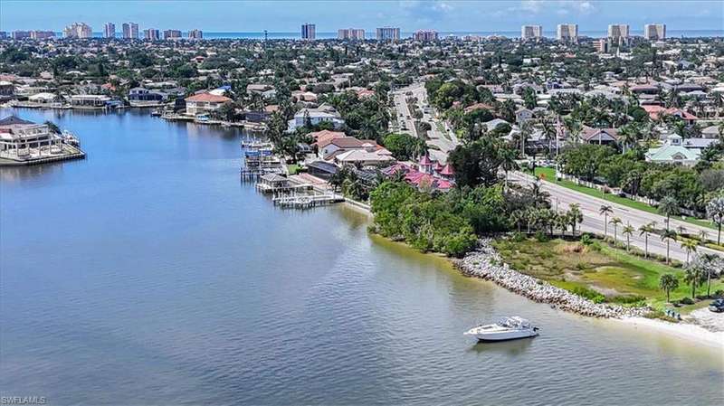 This uniquely shaped waterfront lot on Marco Island offers expansive dimensions, creating the ideal setting for a grand estate with a circular driveway and beautifully landscaped grounds. The property is mere minutes by boat from the open Gulf. Its southern rear exposure ensures abundant sunlight throughout the day, while the prime location puts pristine beaches within comfortable WALKING distance. Residents also enjoy proximity to the island's premier shopping, dining, and entertainment, making everyday living vibrant and accessible. Here, tranquility and luxury converge, presenting a personal retreat as well as a gateway to Marco Island's lively coastal lifestyle. The generous lot accommodates a substantial residence tailored to your preferences, with room for luxury amenities such as a pool, and amazing outdoor living spaces. Seize this exceptional opportunity to create a legacy home perfectly aligned with your vision, in a coveted community celebrated for its natural beauty, exclusivity, and the best that Florida waterfront living has to offer.