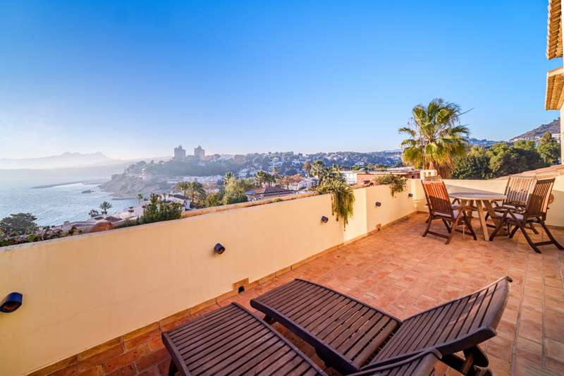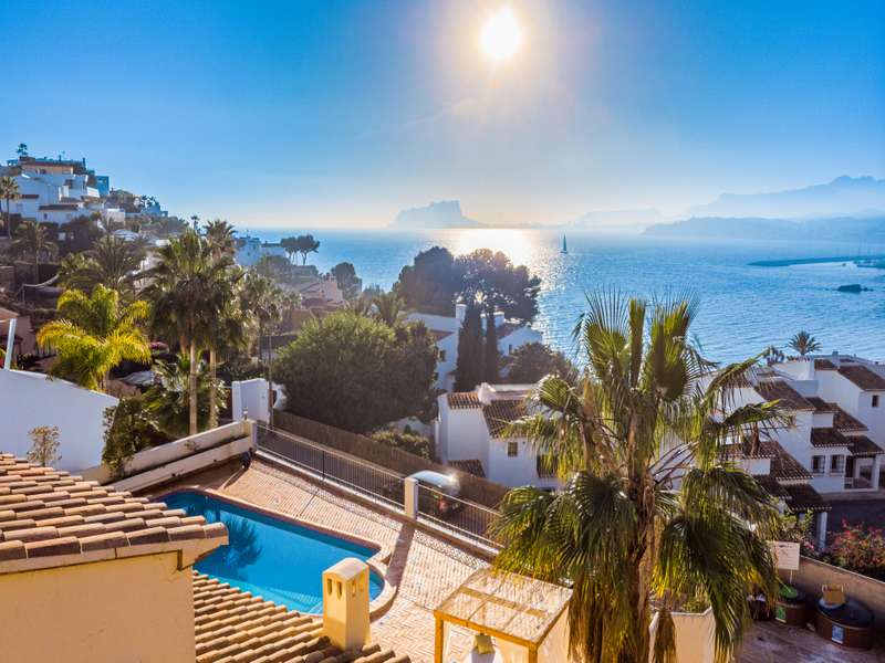 This stunning villa is located in the beautiful town of Moraira, in the province of Alicante. With a built area of 224m² and a plot of 800m², this property offers spacious indoor and outdoor spaces to enjoy Mediterranean life. The villa has a total of 4 bedrooms, 3 full bathrooms, and 1 guest toilet. It is distributed over two levels. The main floor consists of a porch that leads to the entrance hall, a guest toilet, a spacious fully equipped kitchen with a large laundry room, and a living-dining room with a fireplace and access to the outdoor pool area. It also has a double bedroom with an en-suite bathroom. The upper floor consists of a reading area, ideal for those who work from home or need a quiet space for reading or studying, two double bedrooms with closets, a bathroom, and the master bedroom with an en-suite bathroom, dressing area, and access to a terrace with sea views. The outdoor spaces are equally impressive. The villa has a private heated pool, surrounded by a terrace where you can enjoy the sun and sea views, an outdoor shower, and a barbecue area. There is also a private garden and a covered terrace with privacy for enjoying outdoor meals. The high-quality finishes and Mediterranean style are reflected in every detail of this magnificent property. Other highlights of this property include air conditioning in all rooms, underfloor heating throughout the villa with independent control on each floor, motorized security shutters, built-in closets, private garage, and alarm system. The villa is located near Portet Beach, making it an ideal choice for those looking for a luxury property near the sea. In summary, this luxury villa in Moraira is a unique opportunity to enjoy Mediterranean life in a high-quality environment with all the necessary amenities. Don't miss the opportunity to acquire this exclusive property in Alicante. It has a tourist rental license.
