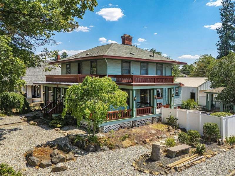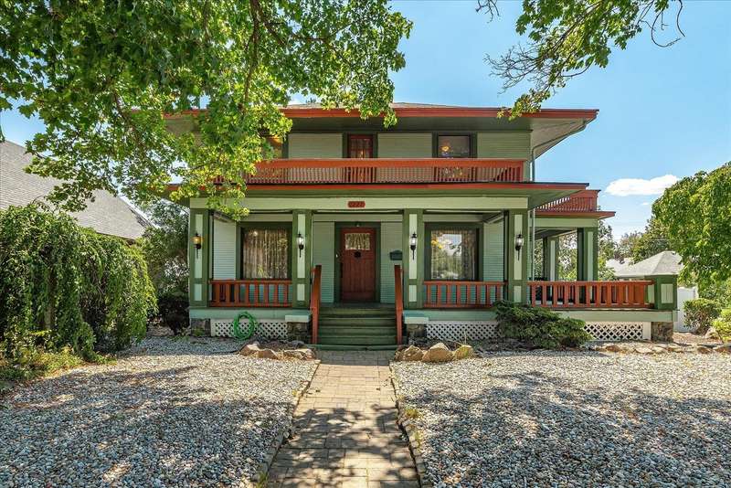 Charming 3 bedroom, 2 bathroom Craftsman home with a heated 3-car garage/shop with 220V and RV parking situated on a corner lot. Stunning box-beam ceilings, detailed wainscoting, picture rails and built-ins adorn every room. The main floor offers a spacious living room with a fireplace and Mini split, formal dining room, tastefully updated kitchen with stainless steel appliances and a bathroom. Upstairs, you’ll find a bright primary suite with an adjoining bathroom featuring a freestanding tub, dual-head shower, period tile and pedestal sink, plus two additional bedrooms and a laundry room. The unfinished basement invites your vision—workshop or extra storage. Enjoy relaxing evenings on the wrap-around porches or entertaining in the fenced backyard, patio or gazebo. Ideally located near charming shops, Corbin Park, the farmers market and schools.