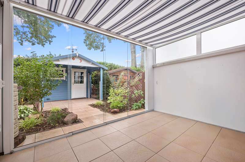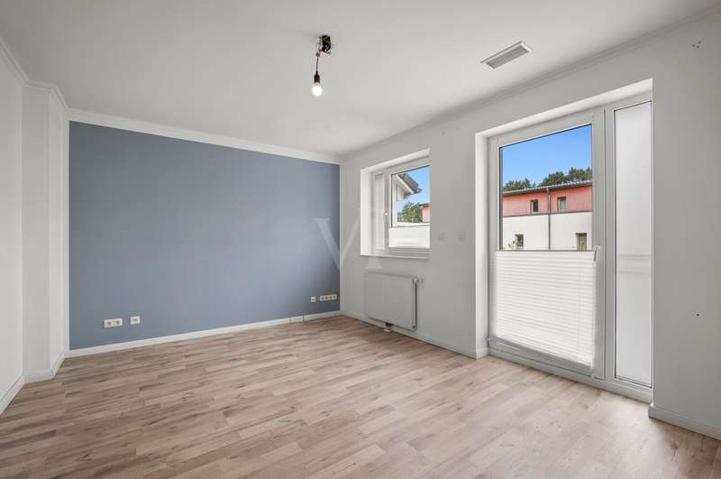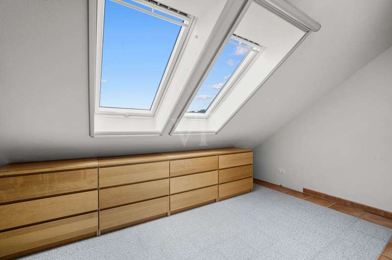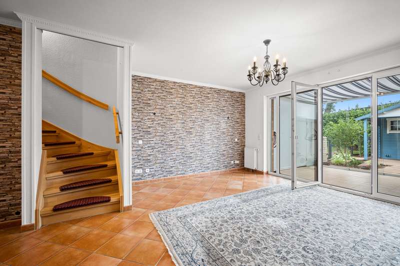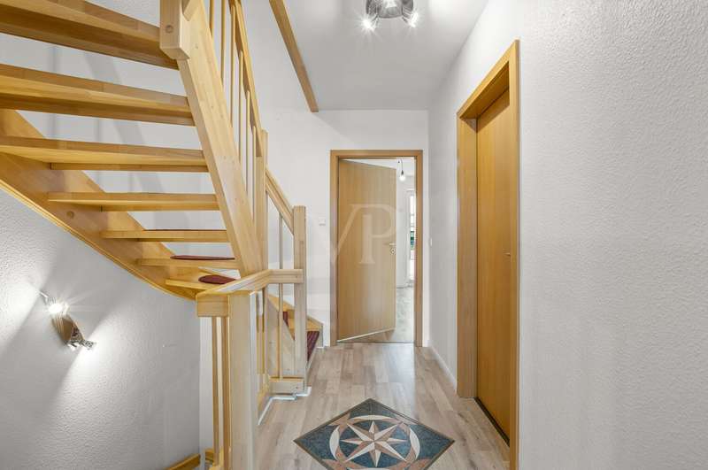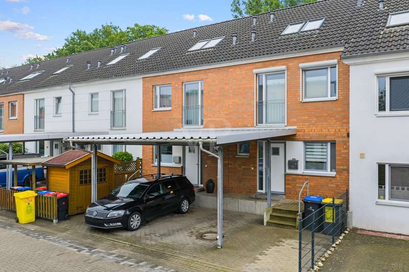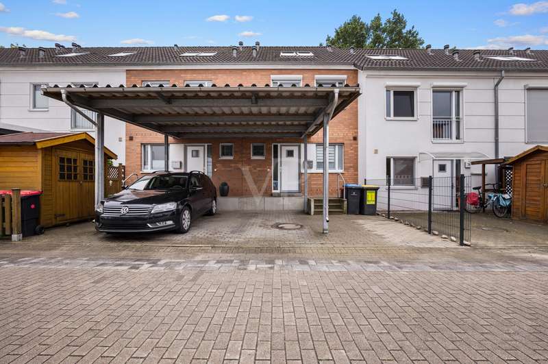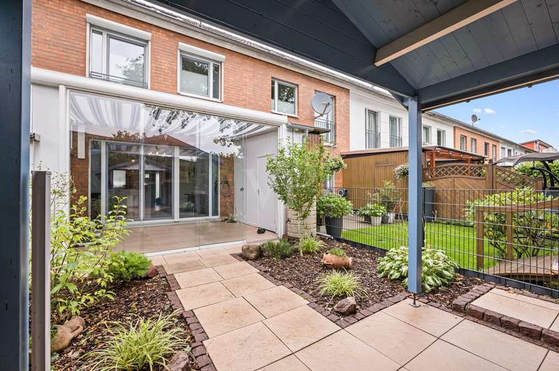This well-kept mid-terrace house built in 2003 offers enough space for sophisticated living on approx. 115 m² of living space - ideal for families who appreciate a modern ambience and well thought-out furnishings. The plot covers approx. 154 m² and impresses with its clear layout and practical usage options. The property is in very good condition and has been lovingly and carefully kept up to date. You are welcomed into the spacious hallway, where you will also find a modern guest WC. The generously proportioned living room, which flows harmoniously into the dining area and kitchen, offers you many design options. The open-plan kitchen is fitted with an exclusive granite worktop and has brand-name appliances from renowned manufacturers Neff and Samsung - ideal conditions for passionate amateur chefs. The carefully laid tiles from Villeroy & Boch underline the high standard of fittings in this kitchen. From the living room, you can access the covered conservatory, whose roof is made entirely of glass. This area can be used flexibly and opened up completely if required - creating seamless transitions between indoor and outdoor space. The feeling of living in the house is further enhanced by the modern ventilation system with heat recovery, which ensures a pleasant indoor climate and low energy costs. There are two spacious bedrooms and a high-quality bathroom on the upper floor. Underfloor heating provides cozy warmth here, while elegant tiles from Villeroy & Boch and others create an elegant ambience in the bathroom. The top floor accommodates 1.5 further rooms, which are ideal as a work area, guest room or retreat for older children. The house is ready to move into and impresses with a variety of other details that make living pleasant and comfortable. A practical carport protects your vehicle from the weather and offers additional storage space. All in all, this mid-terrace house offers a contemporary living solution with a well thought-out room layout, high-quality fittings and energy-efficient technology. The quiet, family-friendly location and the immediate proximity to shopping facilities, schools and local recreational areas round off the offer. Come and view this attractive house and see for yourself the many possibilities it offers. We will be happy to provide you with further information or arrange an appointment for a viewing.