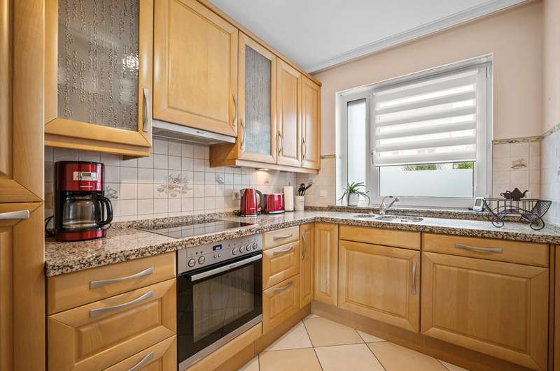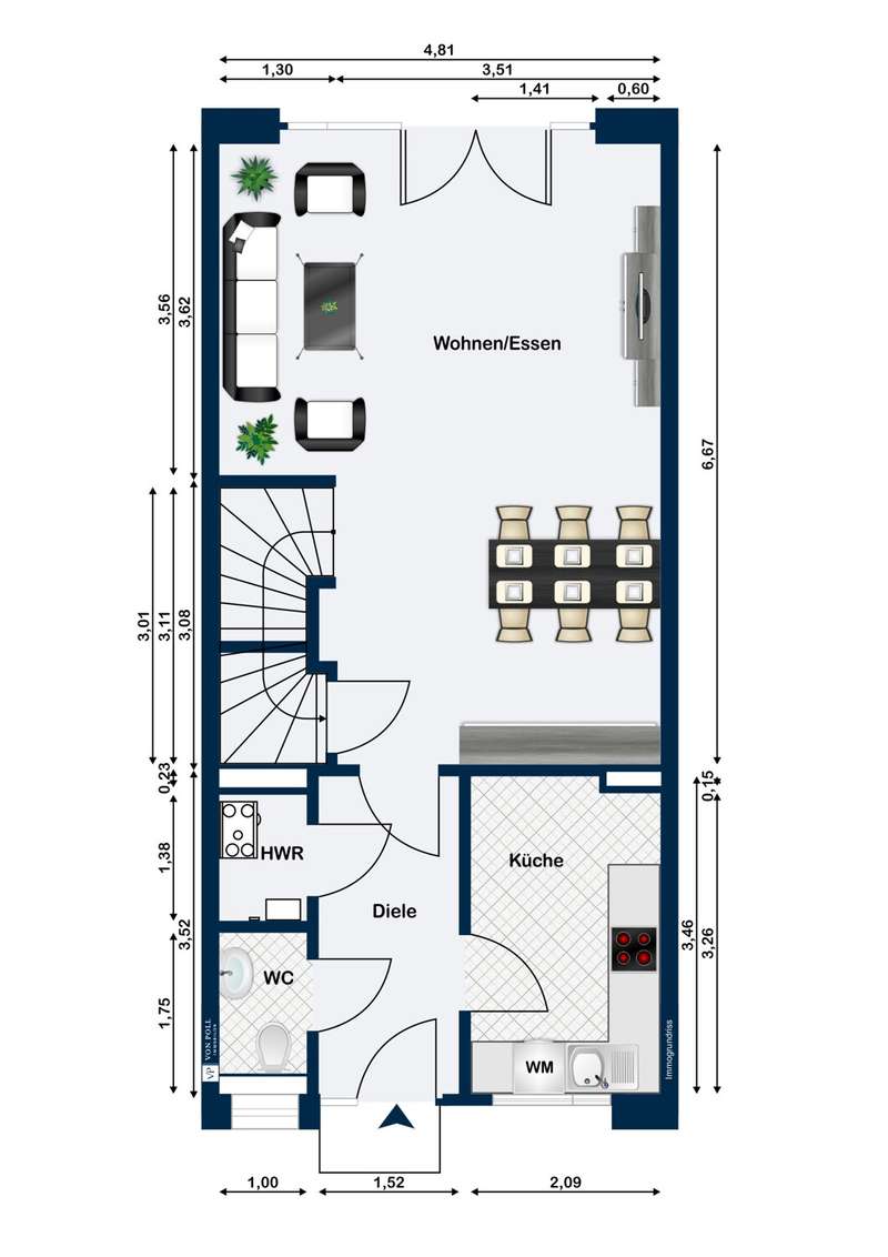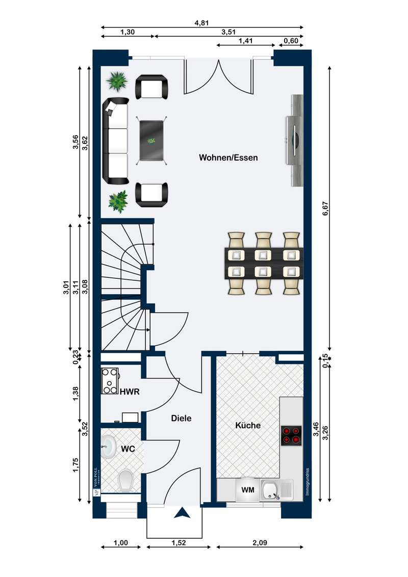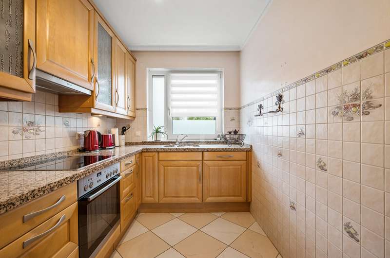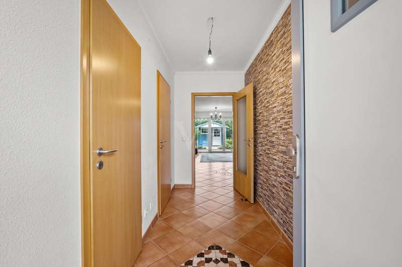 This well-kept mid-terrace house built in 2003 offers enough space for sophisticated living on approx. 115 m² of living space - ideal for families who appreciate a modern ambience and well thought-out furnishings. The plot covers approx. 154 m² and impresses with its clear layout and practical usage options. The property is in very good condition and has been lovingly and carefully kept up to date. You are welcomed into the spacious hallway, where you will also find a modern guest WC. The generously proportioned living room, which flows harmoniously into the dining area and kitchen, offers you many design options. The open-plan kitchen is fitted with an exclusive granite worktop and has brand-name appliances from renowned manufacturers Neff and Samsung - ideal conditions for passionate amateur chefs. The carefully laid tiles from Villeroy & Boch underline the high standard of fittings in this kitchen. From the living room, you can access the covered conservatory, whose roof is made entirely of glass. This area can be used flexibly and opened up completely if required - creating seamless transitions between indoor and outdoor space. The feeling of living in the house is further enhanced by the modern ventilation system with heat recovery, which ensures a pleasant indoor climate and low energy costs. There are two spacious bedrooms and a high-quality bathroom on the upper floor. Underfloor heating provides cozy warmth here, while elegant tiles from Villeroy & Boch and others create an elegant ambience in the bathroom. The top floor accommodates 1.5 further rooms, which are ideal as a work area, guest room or retreat for older children. The house is ready to move into and impresses with a variety of other details that make living pleasant and comfortable. A practical carport protects your vehicle from the weather and offers additional storage space. All in all, this mid-terrace house offers a contemporary living solution with a well thought-out room layout, high-quality fittings and energy-efficient technology. The quiet, family-friendly location and the immediate proximity to shopping facilities, schools and local recreational areas round off the offer. Come and view this attractive house and see for yourself the many possibilities it offers. We will be happy to provide you with further information or arrange an appointment for a viewing.