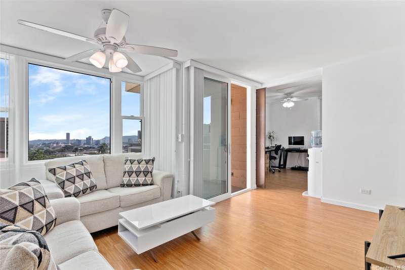 This is a very unique apartment that was remodeled in 2021, and Custom Windows were installed in November 2024 at a substantial cost. Nice view of the city from the lanai and living room. The maintenance fee includes electricity, gas, water, and sewer.