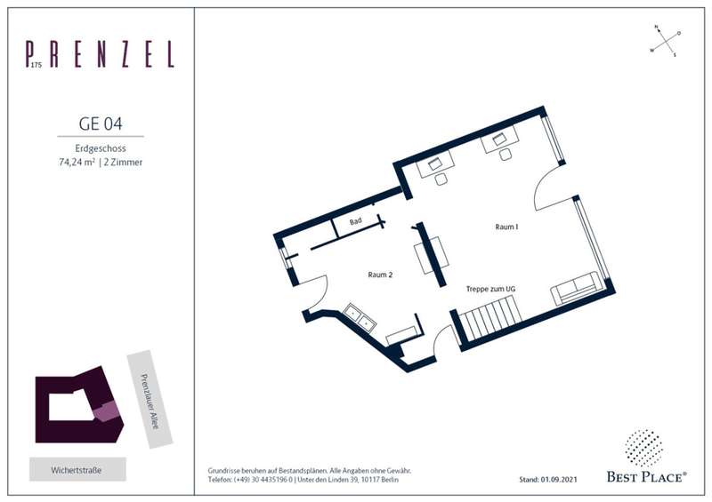 Living in the Helmholtzkiez! The classic Wilhelminian style corner house Prenzel175 was built in 1908 as an imposing 4-story building, consisting of front house and side wing. Bay windows, balconies and a staircase with beautiful historic details give the residential and commercial building a special charm. Everything breathes the epoch around 1900! The total of 48 residential units of the "Prenzel175" have 1 to 6 rooms as well as 7 commercial spaces on the first floor with generous living spaces of approx. 43 to 162 m². Almost all residential units are equipped with a balcony or terrace. Particularly nice: The southeast orientation ensures bright, light-flooded rooms. Whether for singles, couples or families - perfect for all who want to live quietly and at the same time close to the center in a well-situated family district.
