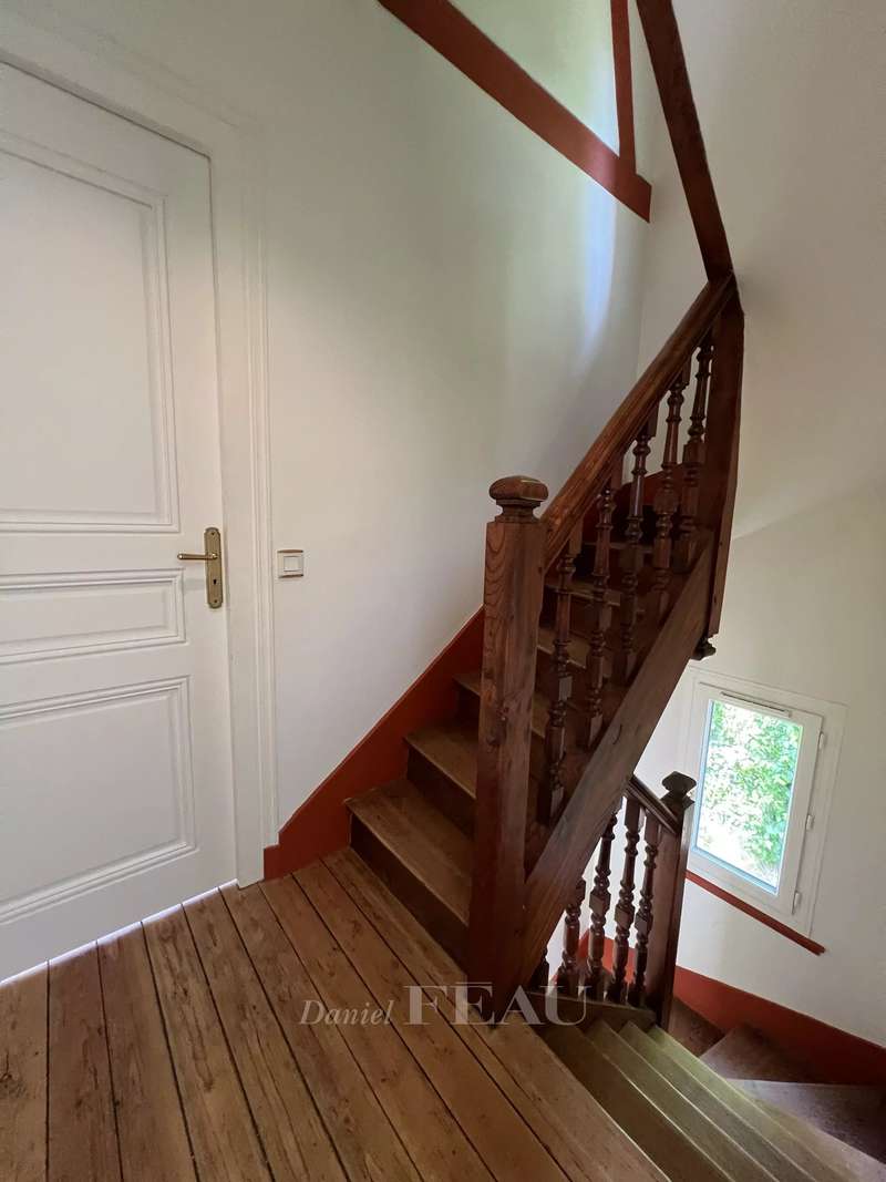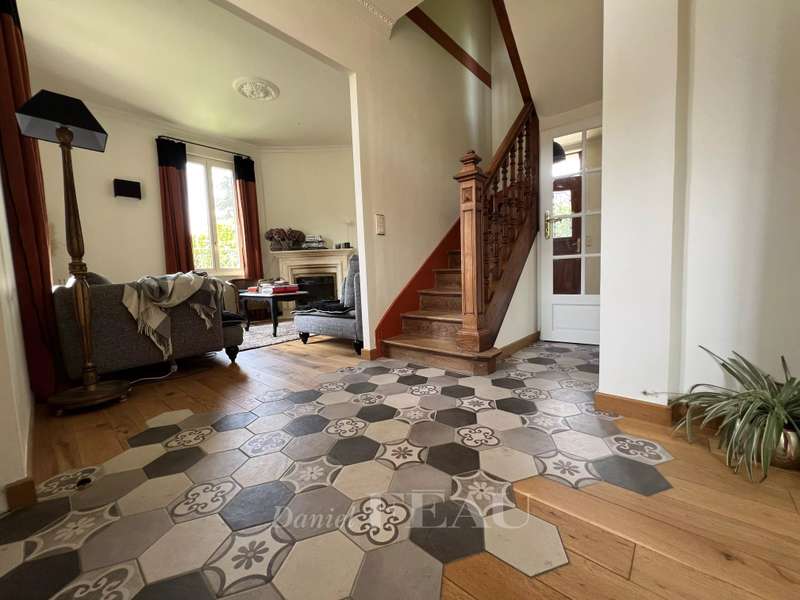 Located near the center of Pont-l'Évêque, this 1920's house will charm you with its authentic character and privileged setting. Set in 1,000 m² of landscaped grounds, it also boasts a beautiful half-timbered outbuilding that can be converted as you wish (workshop, gîte, office, etc.). The main house features: Ground floor: entrance hall, living room with fireplace, dining room, separate kitchen, separate toilet and laundry room. Second floor: two bedrooms, each with its own shower room and toilet. Second floor: two further bedrooms and a bathroom with toilet. Outside, the landscaped garden invites you to relax and offers parking space.