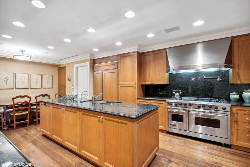 One of the most sought after addresses in the Chicago's Gold Coast neighborhood - 219 East Lakeshore Drive. The historic condo building designed by Fugard & Knapp - was built in 1922 & houses 24 unique and exquisite apartments overlooking Lakeshore Drive, Oak St. Beach & Lake Michigan. This home is three combined units, nearly 6,000 sq. feet & offers one of the largest floor plans available on East Lake Shore Drive. Six bedrooms (all en-suite), two powder rooms, two commercial grade kitchens, formal living room, plus two family rooms for entertaining. Unique to this building, a large private deck that creates an urban sanctuary with professional landscaping, pergola, teak privacy fence, with iconic views of the John Hancock & Palmolive Building. The outdoor space is accessible from four rooms & must be seen to be appreciated. Current bedroom configuration, one bedroom used for home office & other a home gym. Two foyers & hallways offer great space for display of art collections. Home designed & constructed by Marvin Herman. Direct access to home via east elevator, plus two service elevators. Full-service building includes 24-hour doorman, valet parking for two cars (plus 1 car wash per week). This home is multi-functional and great for a large family, in-law arrangement or live in au pair or even an in-town. Premier location includes access to Lake Michigan, the Mag Mile, Oak Street, Rush-Division, fine dining and world class shopping! Best of City Living. Stop Looking. Start Living! The home was featured in Crain's for its amazing outdoor space.