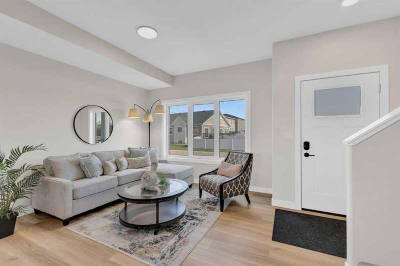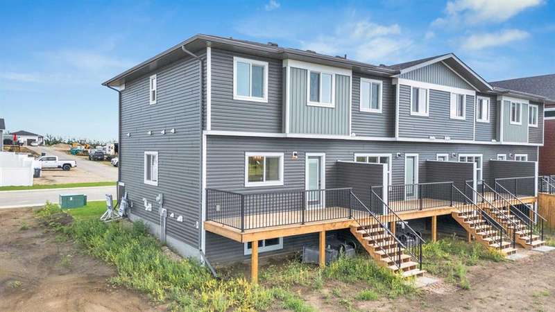 Welcome to Grayhawk — Sylvan Lake’s most exciting new subdivision! This stunning end-unit townhome built by True-Line Homes offers the perfect blend of comfort, style, and functionality in a family-oriented community just minutes from the lakefront, golf course, and town center amenities. With 1,280 sq ft of beautifully finished space, this home features 3 bedrooms, 2.5 bathrooms, and upstairs laundry for added convenience. The open-concept main floor showcases 9’ ceilings, quartz countertops, upgraded cabinetry and flooring, and a sleek appliance package. Enjoy energy efficiency and comfort with Low-E windows, upgraded insulation, and limited lifetime architectural shingles. Step outside onto the rear wood deck — a perfect spot for relaxing or entertaining. Located adjacent to the Sylvan Lake Golf & Country Club, Grayhawk is designed for modern living with future plans for a school, commercial area with shops and services, parks, playgrounds, and multiple housing options — all within a few minutes of the waterfront. Be one of the first to call Grayhawk home and take advantage of this incredible opportunity to own in a thoughtfully planned, up-and-coming community.