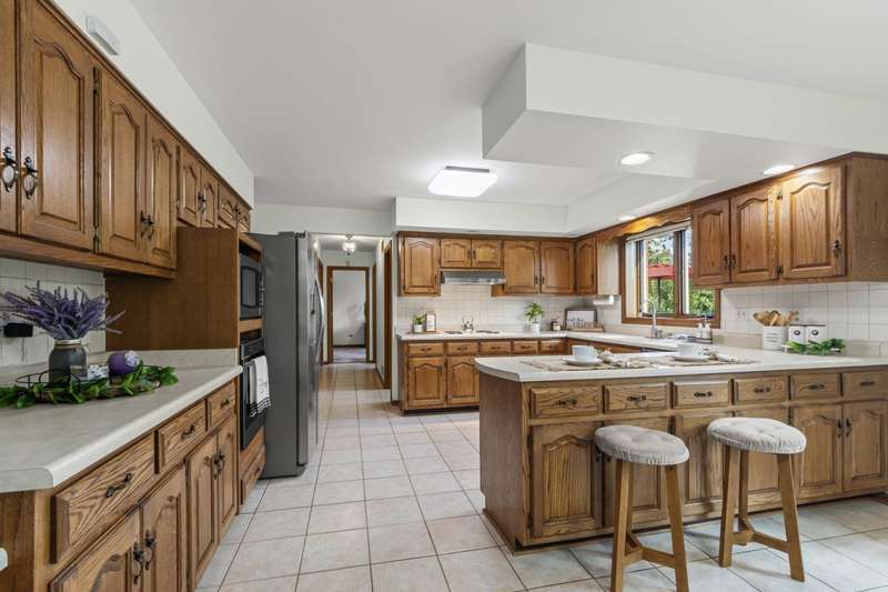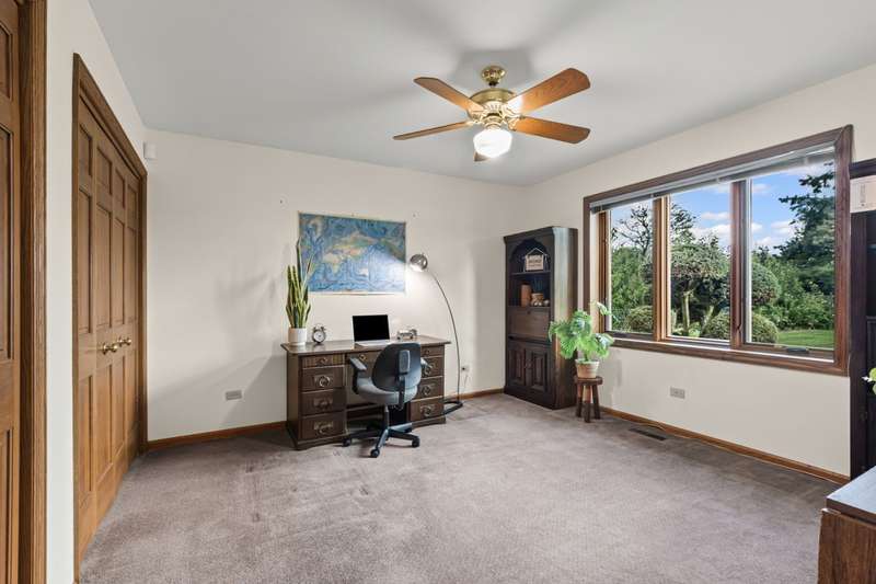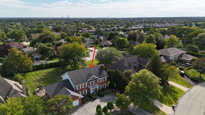 Welcome to this fabulous, custom built home in the Pluskota Subdivision of Orland Park. A rare offering, this home has been loved and cared for by one family since its construction, and sits on a high point, with great views of its surroundings. This property features 5 beds, office, 3 full+2 half baths, a fully finished basement and an oversized 2 car garage. The entrance welcomes you with a bright, 2-story foyer and a gleaming staircase leading to the second floor. The main floor offers multiple spaces for family living and entertaining. The living and family room is divided by a beautifully designed pocket doors, and each room features a picturesque wood burning fireplace. The family room has a wet bar and features a beamed and vaulted ceiling. The living room floor has been reinforced to accommodate the weight of a grand piano. The large dining room, detailed with durable and elegant teak parquet flooring, offers space for any size of holiday/family gatherings. The kitchen is every chef's dream, with plenty of solid hardwood cabinets and counterspace, with new, stainless steel appliances and 2 pantry closets. A spacious breakfast table area will lead you through two oversized, newly installed Pella French doors to a sunny patio and over half acre yard, lined by mature trees & an equipped in-lawn sprinkler system. The hallway east of the kitchen leads to the laundry, full bathroom, and a quiet office, which may serve as guest private quarters, or an in-law arrangement. One area you will be sure to love, is the 2nd floor master suite with its deluxe spa-like bathroom, vanity nook, large walk-in closet and generously sized, bright master bedroom. Three additional bedrooms, as well as full hallway bathroom, located on the west side , completes the 2nd level. The fully finished basement will surprise you with an additional recreational family area, party room with extra cabinets, sink and counterspace for a potential kitchenette, half bathroom, 5th bedroom, wine cellar & extra storage room. The pride of ownership shines through every detail of this home: from double-stud walls (extra insulation), dual heating and cooling (energy efficiency), to incredible woodwork through the house! This home is all electric. There is gas line available just next door. Heating and cooling is provided by 2 newly installed, energy efficient and environmentally friendly heat pumps. This well maintained home is located in a top rated, award-winning school district, close to all kinds of dining, shopping, hiking/biking trails, and more!