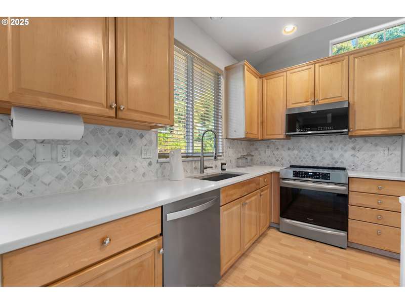Discover your perfect sanctuary in this updated, private end-unit townhome, ideally situated in West Linn's highly sought-after Parker Crest neighborhood (often referred to as Salamo Terrace). Enjoy a serene setting, surrounded by lush green space on three sides, and the convenience of being just blocks from Tanner Creek Park – a fantastic neighborhood amenity. This highly walkable neighborhood offers easy access to trails, top-rated schools, and convenient shopping.Step inside to an inviting open-concept main floor, perfect for entertaining with its cozy gas fireplace, updated kitchen, and convenient half-bath. Upstairs, three spacious bedrooms, two full bathrooms, and a dedicated laundry area provide ample personal space for everyone. The primary suite offers a sweet private balcony, ideal for relaxing.Recent upgrades ensure this home is truly move-in ready, including a new roof and gutters (2022), a refreshed kitchen with new counters, backsplash, and appliances (2023), and a custom kitchen island (2024). The HOA fee is $418.00 per month.