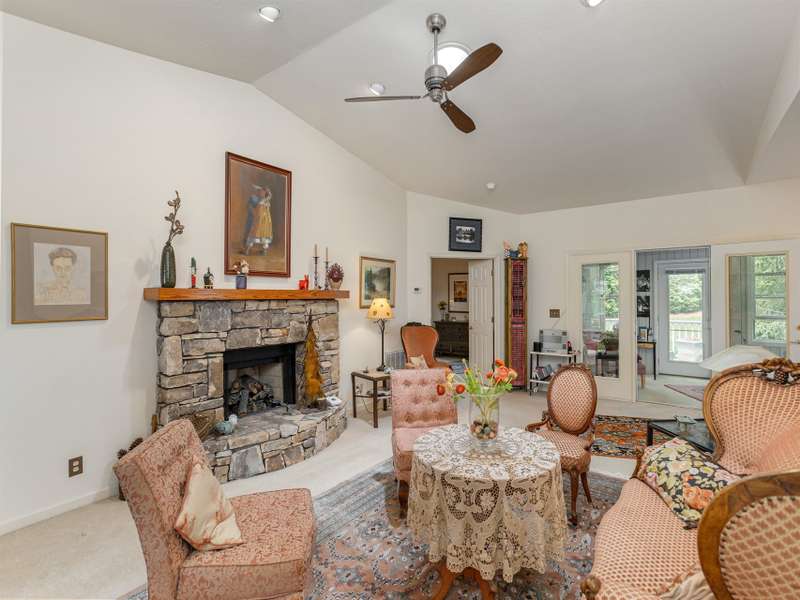 Welcome to easy, low-maintenance living in this beautifully maintained 2BR/2BA condo, perfectly nestled between DT Hendersonville and charming Flat Rock. This home is located in a 55+ neighborhood and offers one-level living, peace, privacy, and convenience. The open floor plan features a vaulted ceiling, a spacious living room with a cozy fireplace, seamlessly flows into the dining area, sunroom, and back deck, which are ideal for enjoying your morning coffee or relaxing with views of nature. Large primary en-suite includes a walk-in closet and abundant natural light. A private guest en-suite is perfect for visitors. A versatile bonus room with built-in bookshelves, ideal for a home office, library, or hobby space. The garage is easy to access through the mud room. Enjoy the best of both comfort and convenience in a quiet, well-kept community just minutes from restaurants, shopping, and medical facilities.