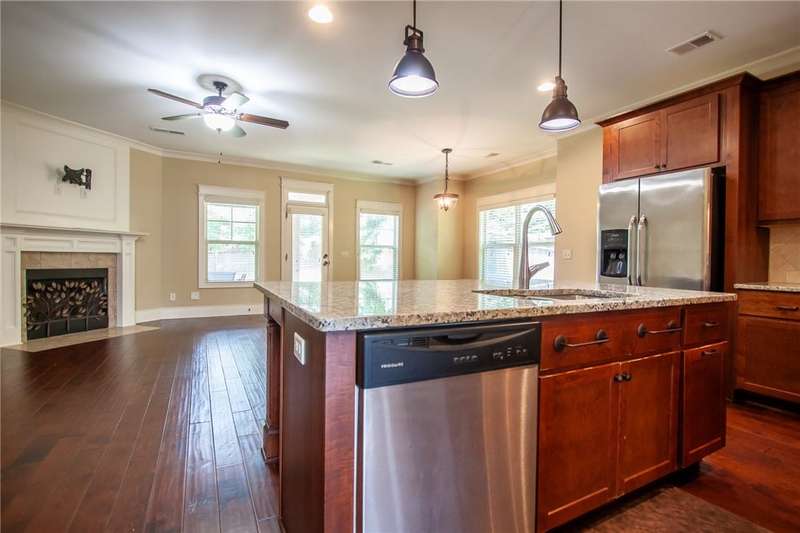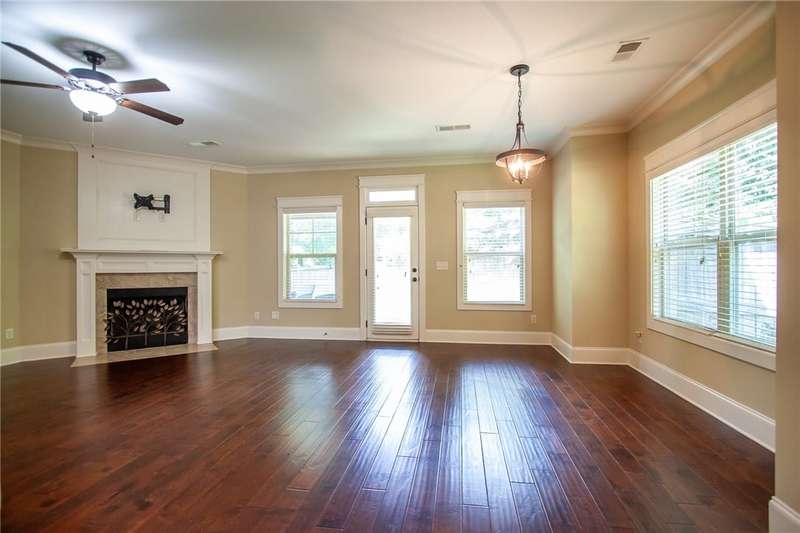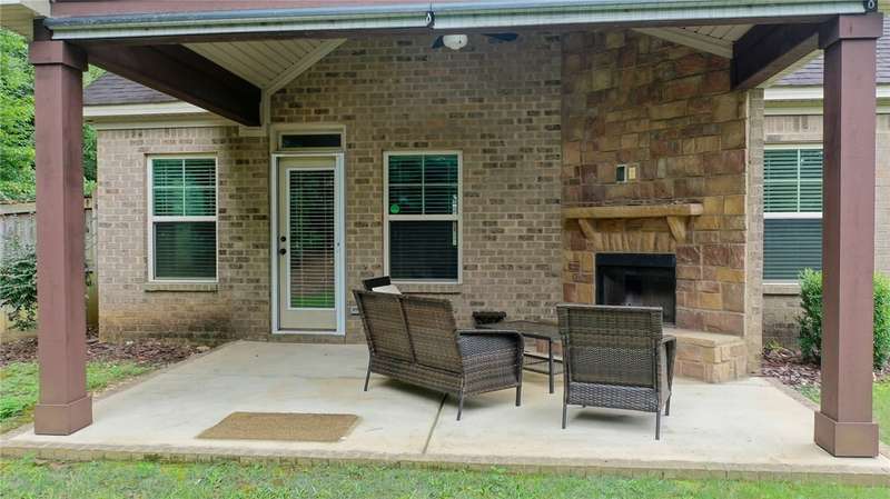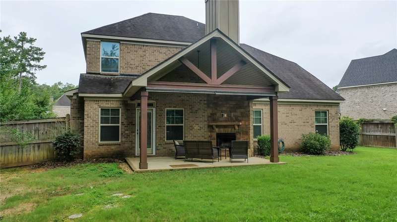 Welcome to this stunning 4-bedroom, 2.5-bathroom two-story home on a spacious corner lot in Morgan Woods subdivision. Thoughtfully designed for both comfort and style, this home features an open-concept layout with abundant natural light, a large kitchen with ample counter space, and a cozy living area perfect for entertaining or relaxing. All bedrooms are generously sized, including a spacious primary suite with a walk-in closet and en-suite bath on main floor. Step outside to your private backyard retreat- complete with a large, covered patio and a beautiful woodburning fireplace, ideal for year-round outdoor gatherings and perfect for game day entertaining. With its prime location, curb appeal, and exceptional outdoor living space, this home is a must-see!