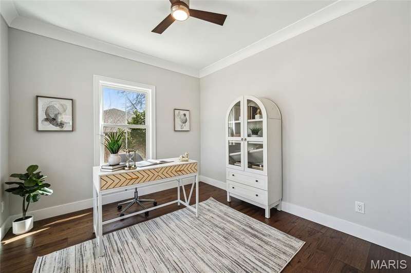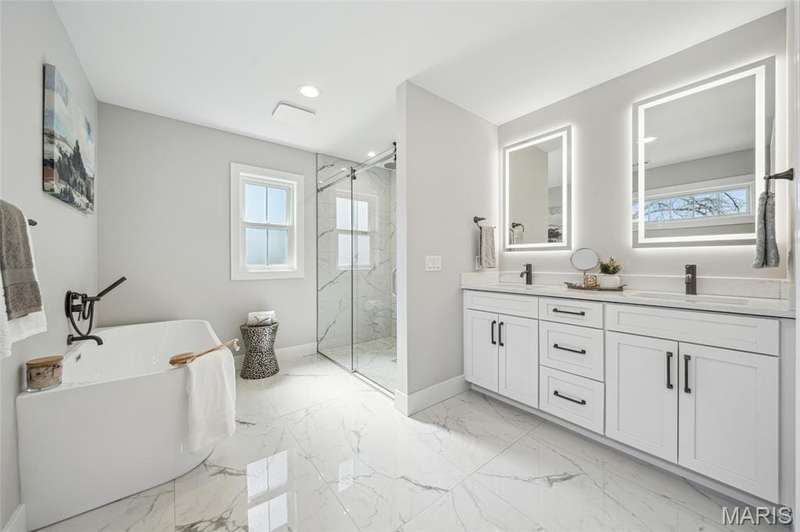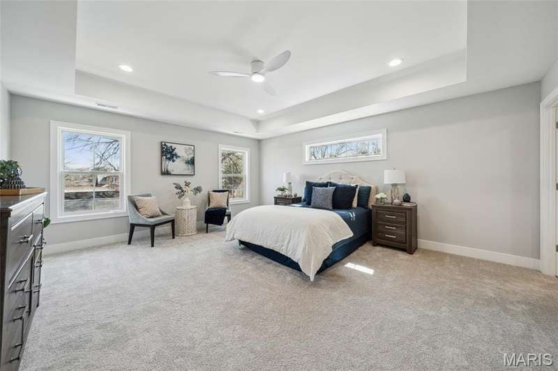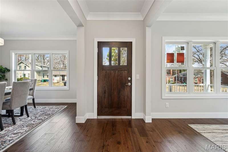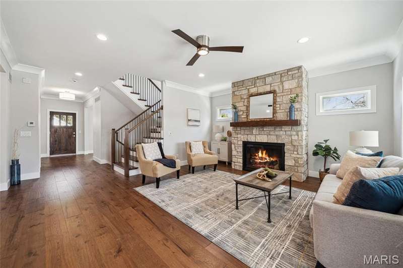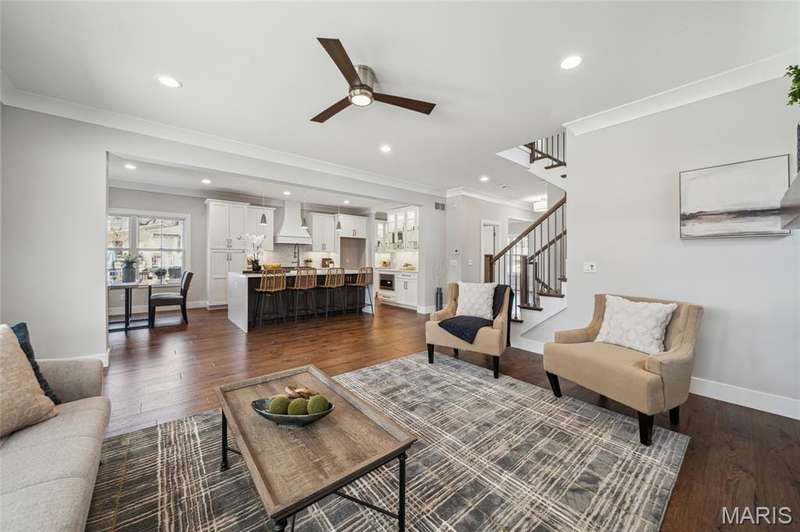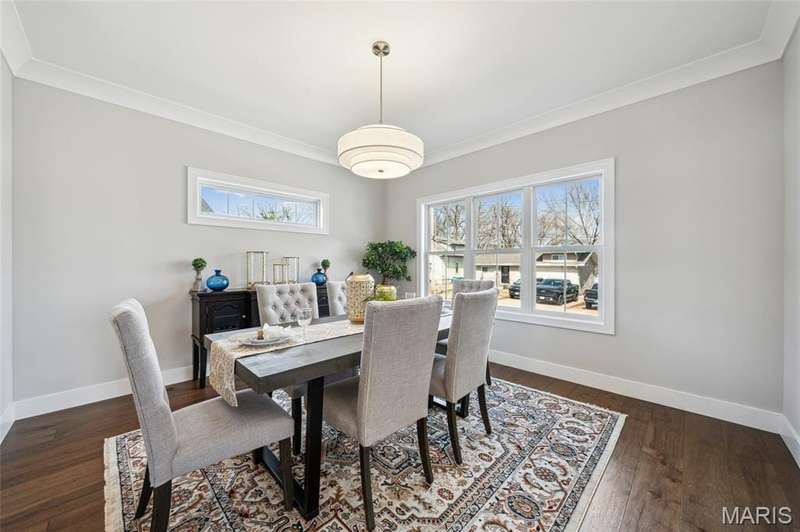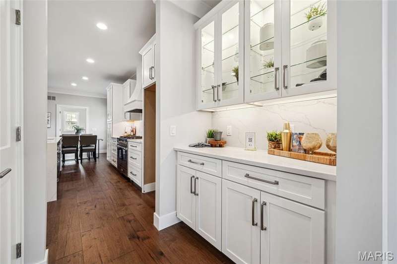 This classic 5 bed/3.5 bath home blends the timeless charm of Webster Groves with the ease of modern living. The open-concept layout featuresformal living and dining rooms plus a spacious kitchen, breakfast area, and family room?perfect for entertaining. The chef?s kitchen includesstainless steel appliances, quartz counters, custom cabinetry, center island, and a butler?s pantry. Upstairs, the large primary suite offers acoffered ceiling, two custom walk-in closets, and a luxurious bath with double vanities, soaking tub, and separate shower. Three additionalbedrooms and a full bath complete the upper level. The finished lower level adds a fifth bedroom, full bath, and a generous rec room. Outside,enjoy a covered patio and a heated, insulated 3-car garage. Thoughtful builder upgrades throughout make this home a standout. A must-see!