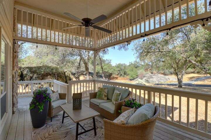 WELCOME HOME - to this Charming Farmhouse with wrap around porch, circular driveway and plenty of space. Home sits on 5 acres with 6 Bed/4 Bath, office, mudroom and upstairs laundry. Great for entertaining - formal Living Room with vaulted ceilings and tons of windows & fireplace. Separate Dining Room, adorable eat-in kitchen nook and a huge family room off the kitchen with floor to ceiling windows to let the beauty of this property shine in. You will enjoy the peace and quiet of this lovely private lot with rolling hills, gorgeous, low maintenance -natural landscape with an abundance of trees and rock-outcroppings. Oversized 4+ car garage has workshop in back with lots of storage and workspace for whatever your hobbies are. Let your imagination go wild with the space above the garage which could easily be converted to an income-generating apartment or a spectacular Man Cave, Game Room, Craft Room or even big enough to run a home-based business. In addition to all this - home has energy efficiencies such as a fully owned solar system, tankless hot water heater and two AC units. This quiet private area of Loomis rarely up for sale and you can make it yours! Great Opportunity to be in desirable Loomis Union School & Del Oro High - Don't Miss it - A MUST SEE!