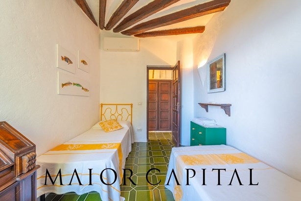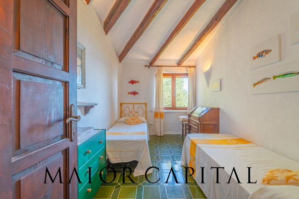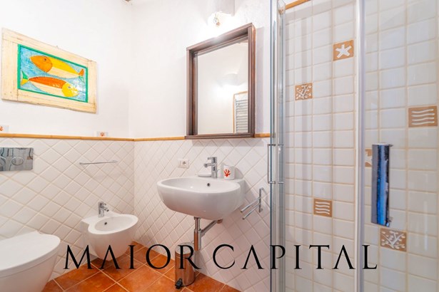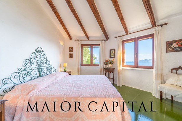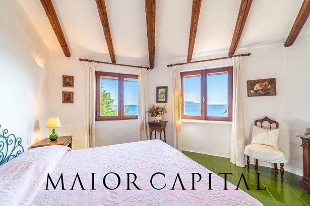 The sleeping area, located on the first floor, offers an intimate and panoramic retreat. The master bedroom is a true paradise: its windows frame the sea, providing unforgettable awakenings. A second veranda, connected to the corridor on the upper floor, offers a further space in which to enjoy the panorama, amidst scents of saltiness and sea breeze. The floor is completed by a double bedroom, ideal for children or guests, and two bathrooms with shower, with attention to detail.