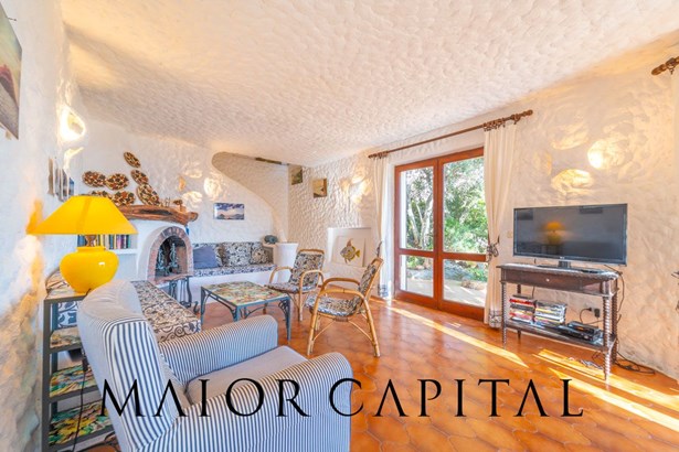 This house is an authentic window on the sea of Sardinia, with views that will thrill you every moment of the day. The main veranda, reached by a pathway immersed in nature, is the perfect place to relax and enjoy the sea view. From morning coffee to dinner under the stars, every moment spent here becomes a precious memory. Even from the inside, the sea remains the star: the living room, thanks to its large windows, frames a landscape that seems to be painted.