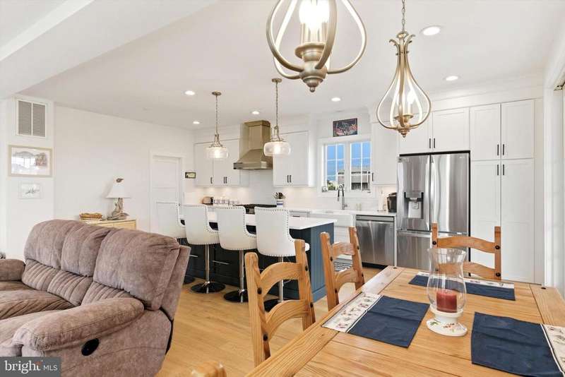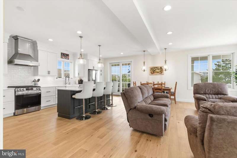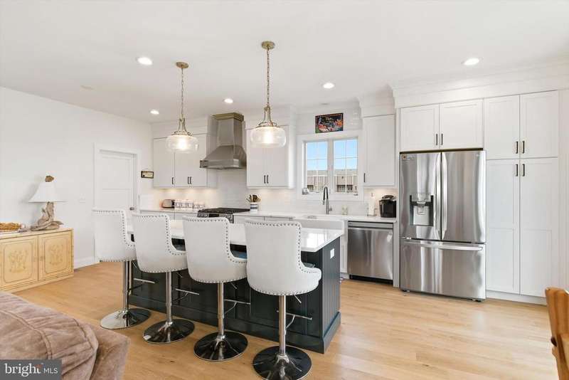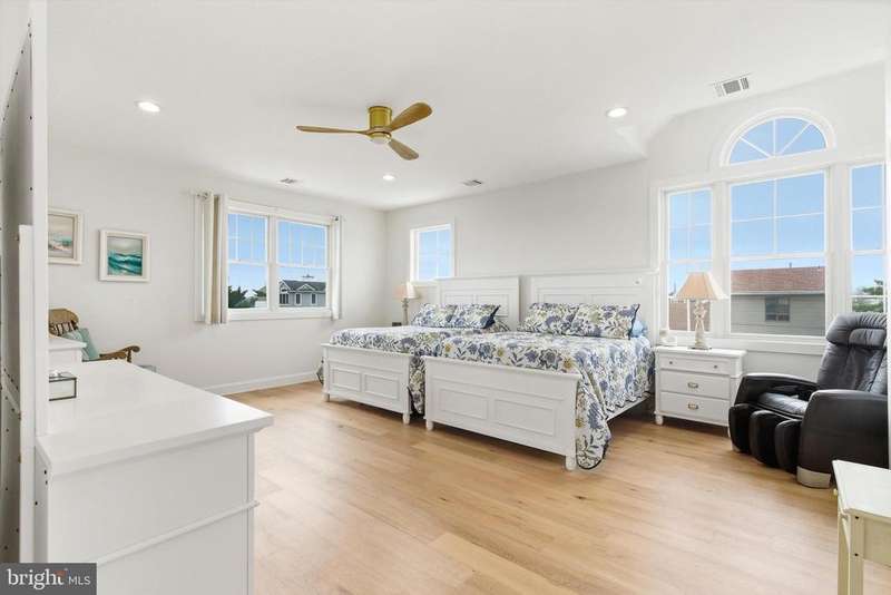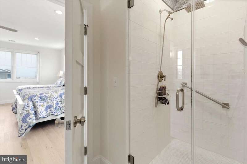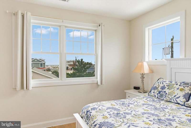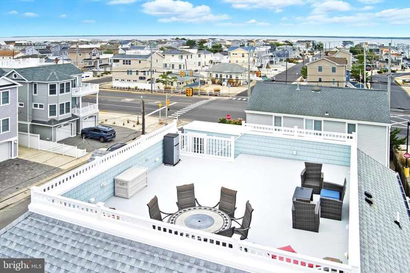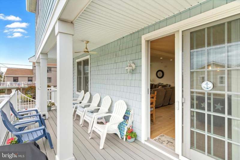 Modern Coastal Retreat in a Sought-After Shore Location Welcome to your dream beach house! A stunning year young Coastal Contemporary home designed for shore living at its finest. Featuring Bermuda Blue Certain Teed Cedar Shake Siding with crisp white trim and charming architectural details, this home captures the timeless elegance of a Nantucket-inspired retreat while offering all the modern comforts you expect. Just one block from the ocean and thoughtfully designed with high-end finishes and a relaxed, beach-inspired aesthetic. Offered fully furnished and perfectly staged, this home is move-in ready for immediate enjoyment. The first level welcomes you with two front entrances leading to a versatile space, ideal for a gym, home office, or recreation area, complete with a full bathroom. On the second level, the heart of the home unfolds in a bright open-concept kitchen and living area that flows seamlessly to the wrap-around covered porch, perfect for entertaining or enjoying the ocean breeze. A spiral staircase connects the main level to the private upper deck, adding a touch of coastal charm. Every detail, from the elegant finishes to the coastal color palette, enhances the serene shore vibe. The upper level features a spacious ensuite primary bedroom, offering a private retreat, along with two additional bedrooms that share an adjoining bath ideal for guests or family. Finally, ascend to the top deck where panoramic ocean and bay views await the perfect spot to watch sunrises and sunsets in stunning color. Combining luxury, comfort, and coastal charm, this home embodies the best of Jersey Shore living just steps from the sand, shops, and dining. Be sure to watch the video to capture the true essence of this magnificent home!