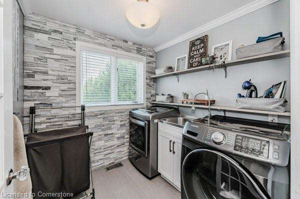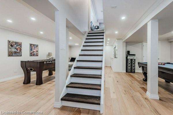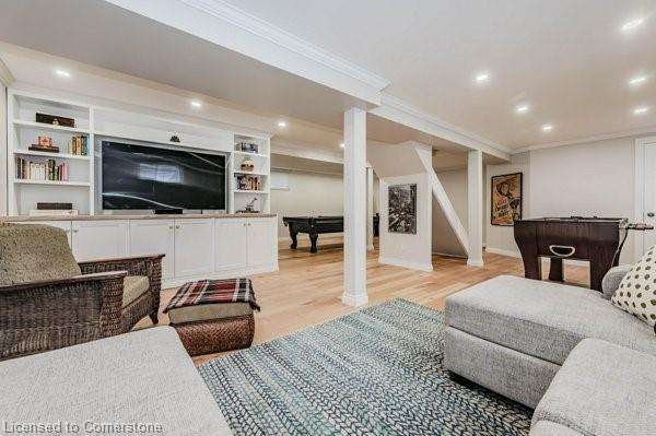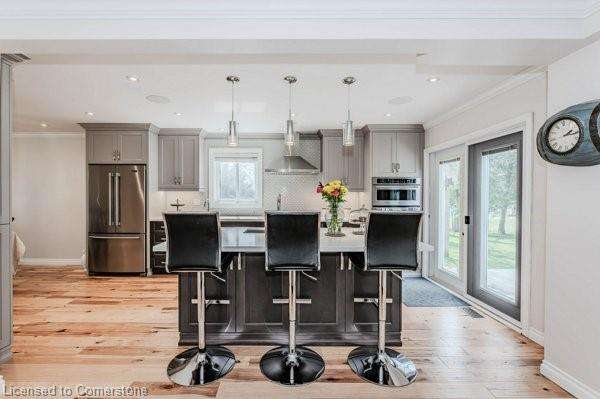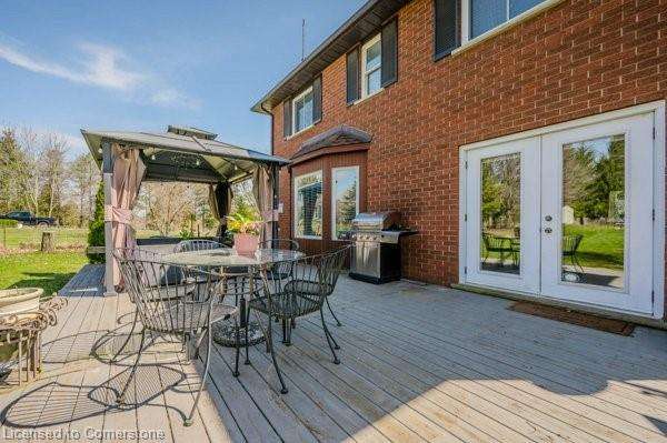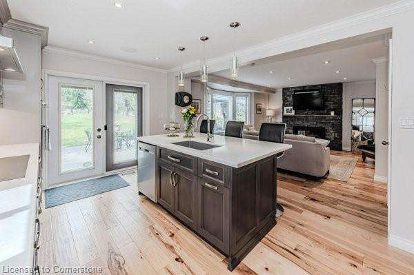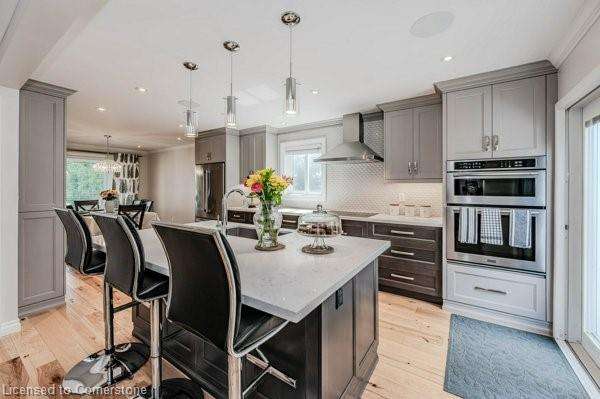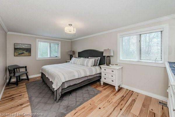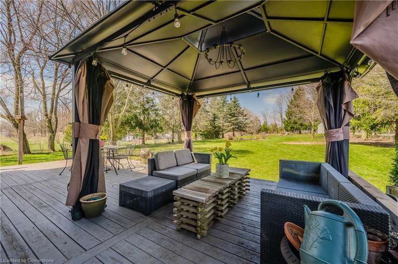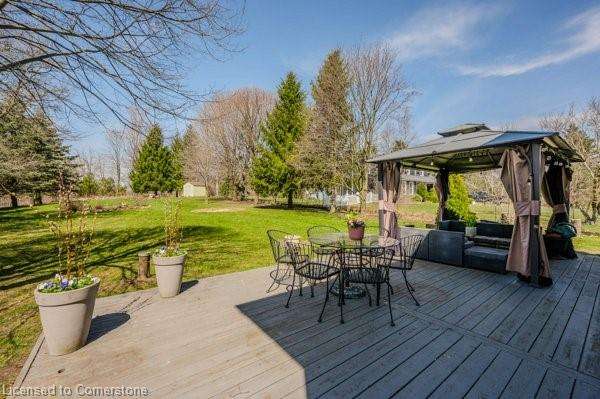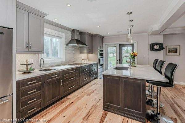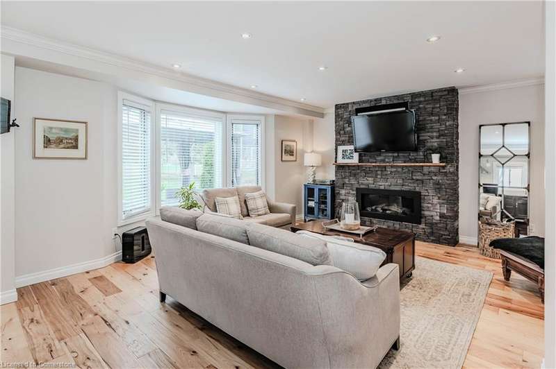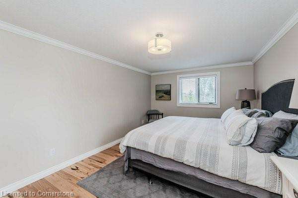 Welcome to this stunning country retreat in Puslinch. Nestled on over an acre of land, this beautifully updated home has been thoughtfully renovated from top to bottom with premium finishes and attention to detail. Upon entry, you're welcomed into a bright, open-concept living space filled with natural light. The custom chefs kitchen features a large quartz island and flows seamlessly into a striking living room anchored by a stone fireplace. Hand-scraped natural hickory engineered hardwood floors run throughout the main living areas, complemented by recessed lighting, custom built-ins, crown moulding on every level, and beautifully updated bathrooms. The fully finished basement, newly completed in 2024, adds valuable additional living and recreation space. Set on a spacious lot, this home is move-in ready and offers room for future possibilities. Experience the perfect balance of peaceful country living and contemporary elegance.